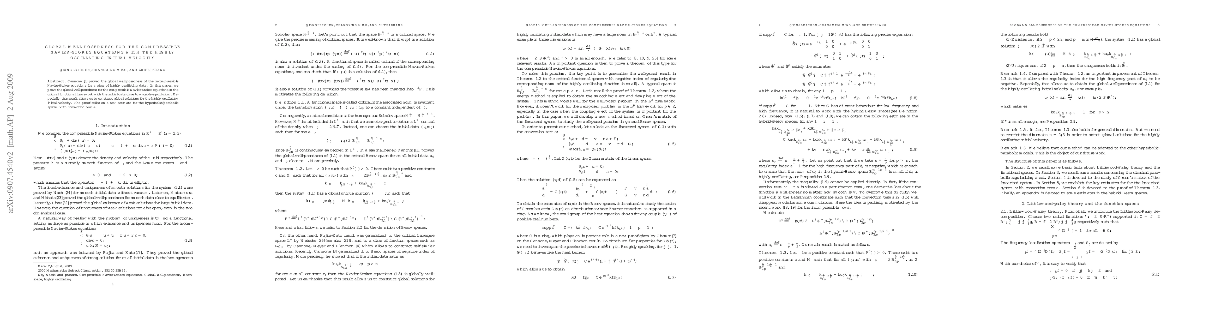This paper proves global well-posedness for the compressible Navier-Stokes equations with highly oscillating initial velocities, extending previous work on incompressible flows. The proof utilizes a novel estimate for the associated hyperbolic/parabolic system with convection terms.