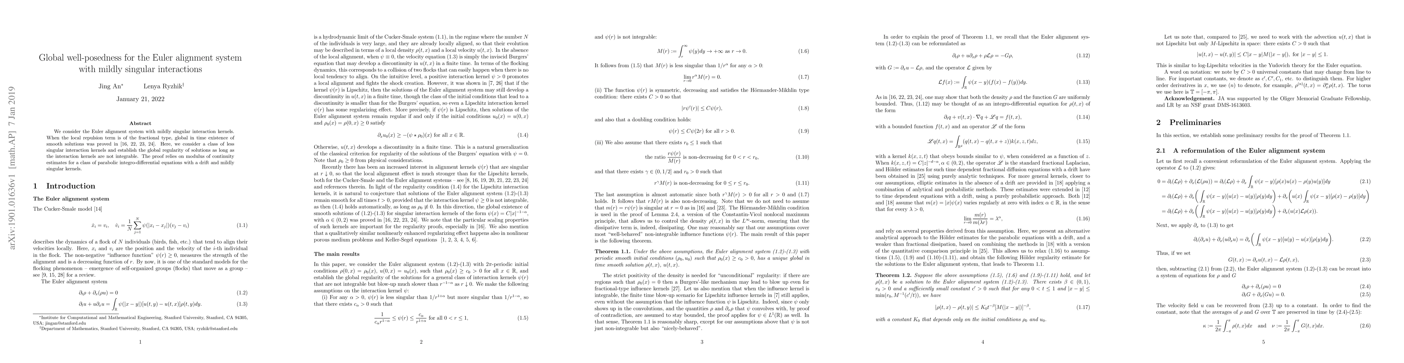 This paper establishes global well-posedness for the Euler alignment system with mildly singular interaction kernels, extending previous results for fractional repulsion terms. The proof utilizes modulus of continuity estimates for parabolic integro-differential equations with drift and mildly singular kernels.