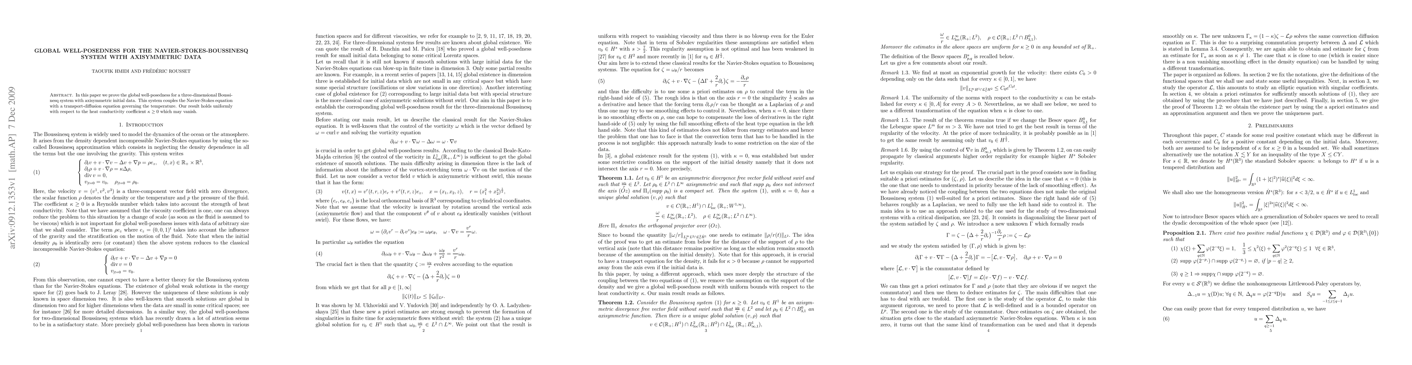 In this paper we prove the global well-posedness for a three-dimensional Boussinesq system with axisymmetric initial data. This system couples the Navier-Stokes equation with a transport-diffusion equation governing the temperature. Our result holds uniformly with respect to the heat conductivity coefficient $\kappa \geq 0$ which may vanish.