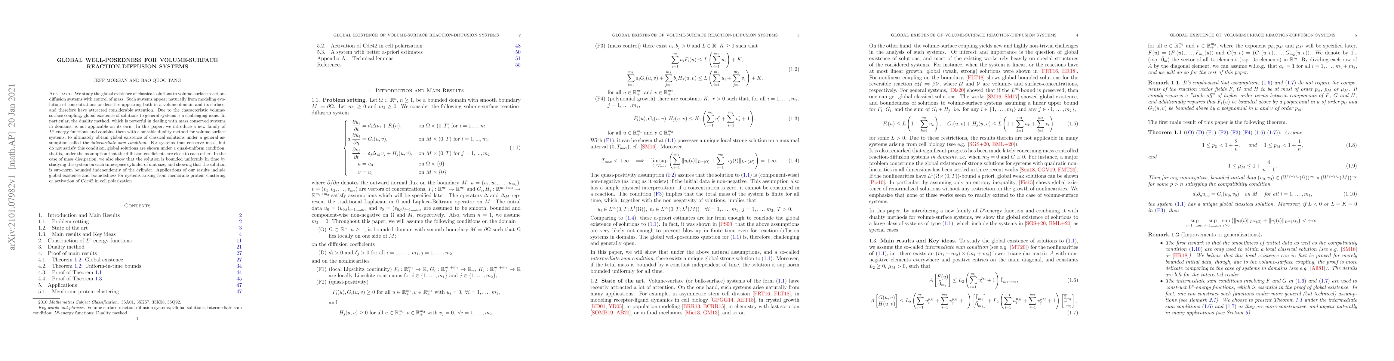 This paper establishes global existence and boundedness of classical solutions for volume-surface reaction-diffusion systems, introducing new $L^p$-energy functions and a combined duality method to address the volume-surface coupling. The study applies to systems conserving mass, with solutions shown under a quasi-uniform condition, and to mass-dissipative systems via sup-norm boundedness.