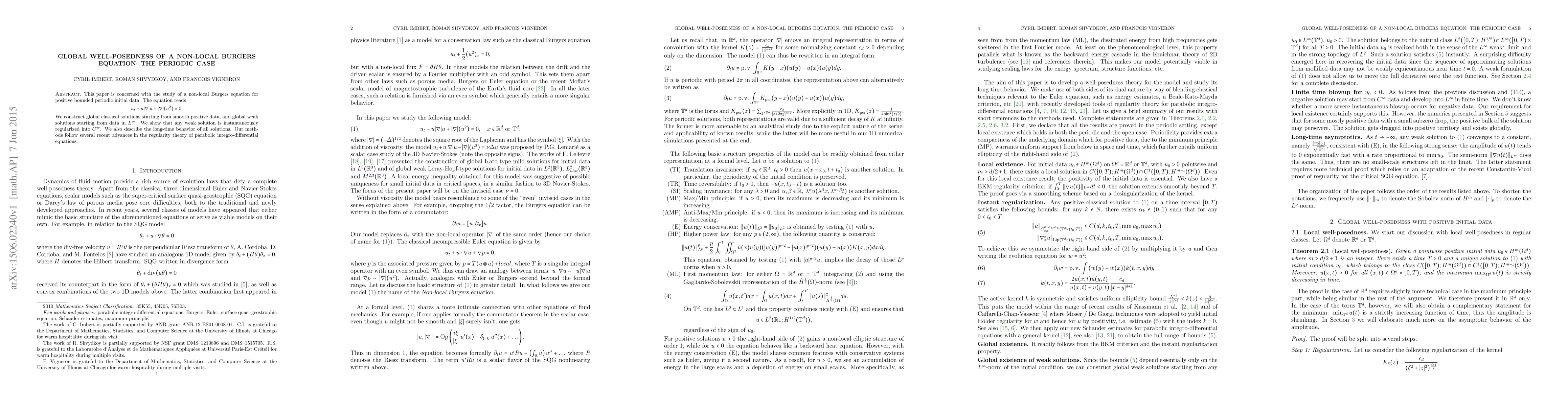 This paper is concerned with the study of a non-local Burgers equation for positive bounded periodic initial data. The equation reads $$ u_t - u |\nabla| u + |\nabla|(u^2) = 0. $$ We construct global classical solutions starting from smooth positive data, and global weak solutions starting from data in $L^\infty$. We show that any weak solution is instantaneously regularized into $C^\infty$. We also describe the long-time behavior of all solutions. Our methods follow several recent advances in the regularity theory of parabolic integro-differential equations.