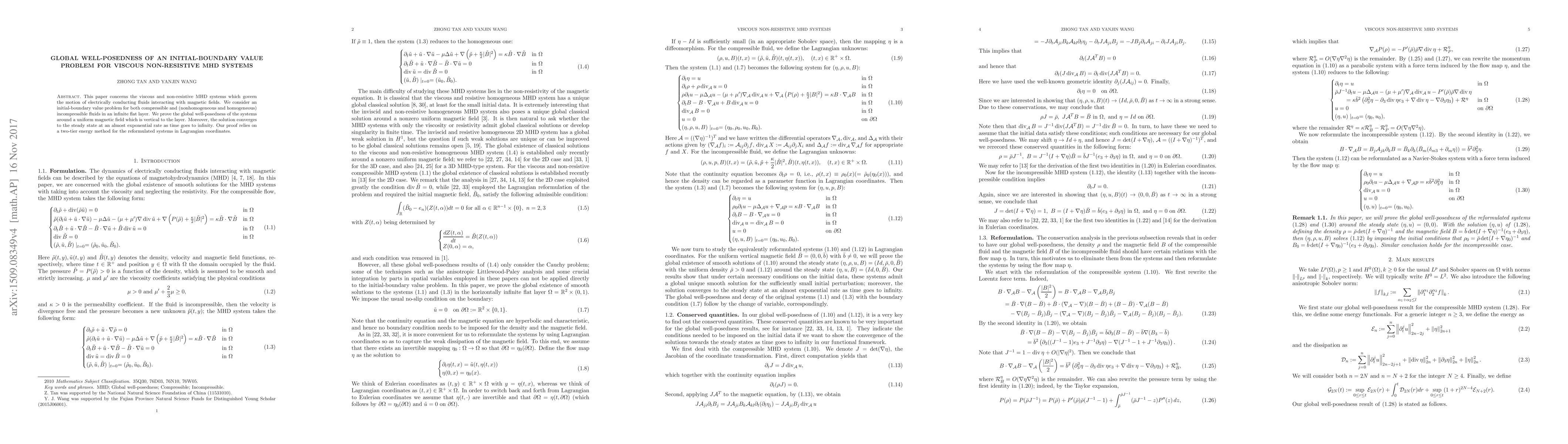 This paper establishes global well-posedness for viscous, non-resistive MHD systems governing electrically conducting fluids in an infinite flat layer, proving convergence to steady state with an almost exponential rate. The proof utilizes a two-tier energy method in Lagrangian coordinates.