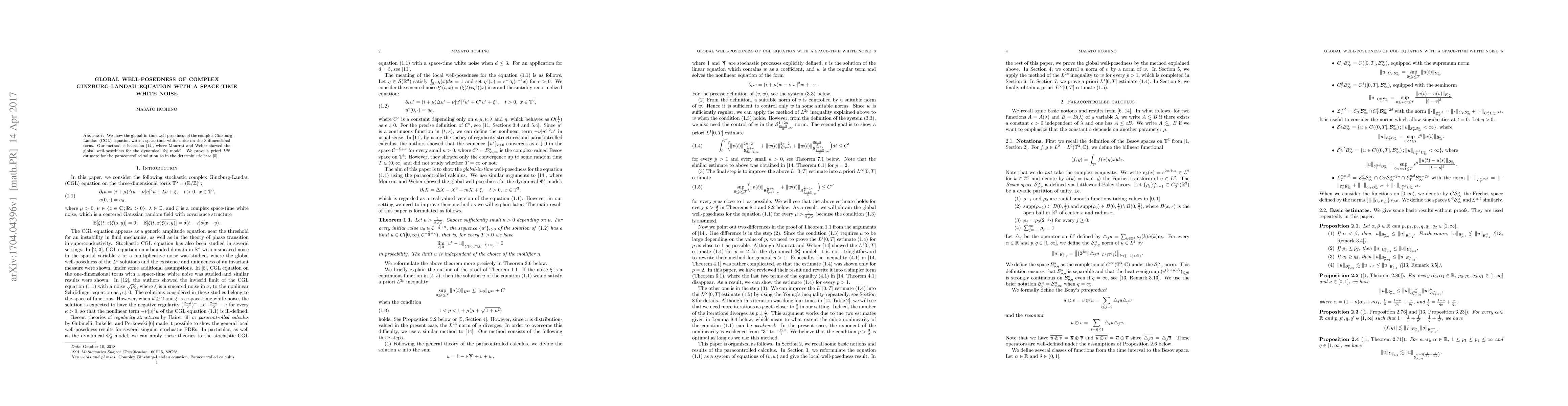 This paper demonstrates the global-in-time well-posedness of the complex Ginzburg-Landau equation with a space-time white noise on a 3-dimensional torus, extending methods from the $\Phi_3^4$ model to achieve this result. The authors establish an $L^{2p}$ estimate for the paracontrolled solution, mirroring the deterministic case.