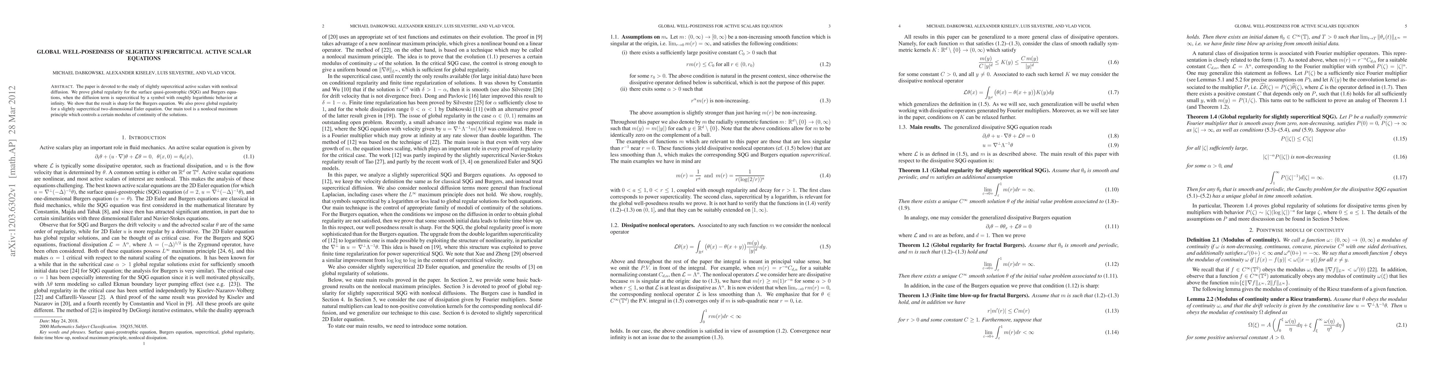 This paper establishes global regularity for slightly supercritical active scalar equations, including the surface quasi-geostrophic, Burgers, and two-dimensional Euler equations, using a nonlocal maximum principle to control solution continuity. The results are shown to be sharp for the Burgers equation.