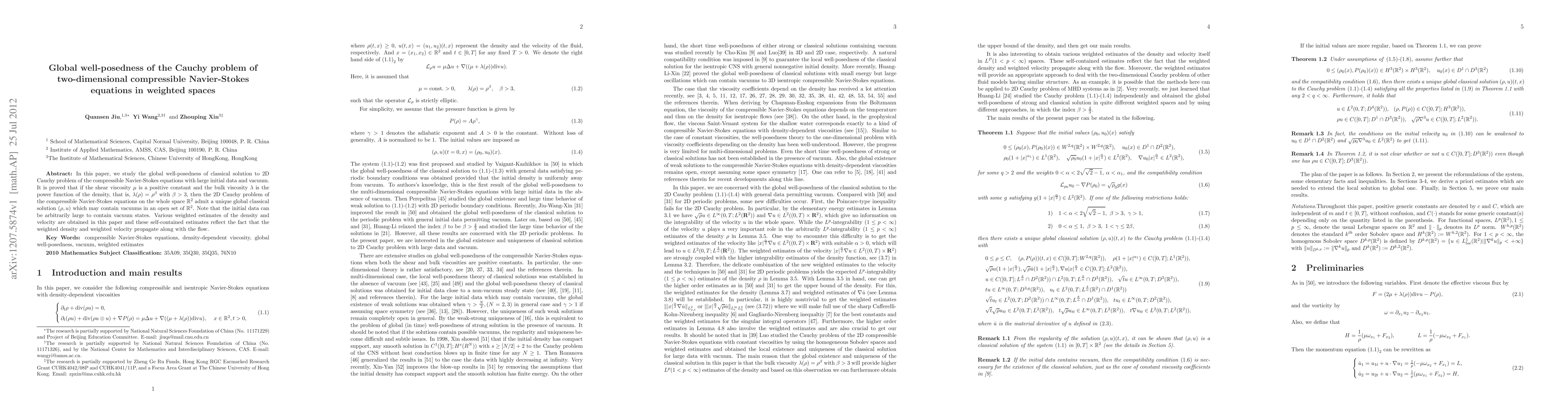 This paper proves the global well-posedness of classical solutions to the 2D compressible Navier-Stokes equations under large initial data and vacuum conditions. It establishes that with specific viscosity conditions, a unique global solution exists, allowing for vacuum states.