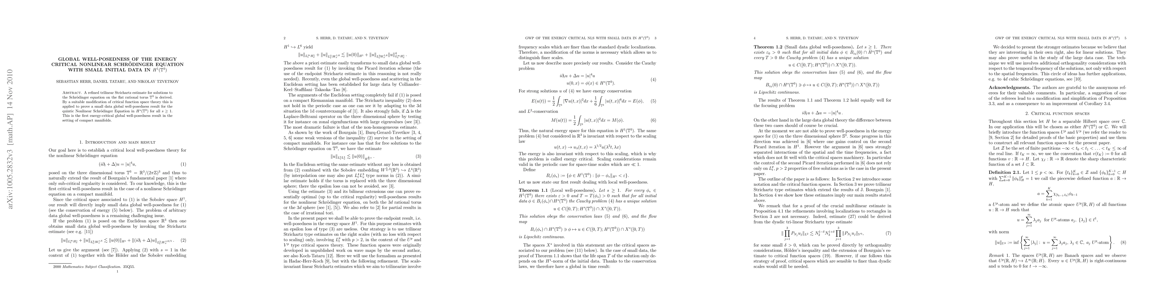 A refined trilinear Strichartz estimate for solutions to the Schr\"odinger equation on the flat rational torus T^3 is derived. By a suitable modification of critical function space theory this is applied to prove a small data global well-posedness result for the quintic Nonlinear Schr\"odinger Equation in H^s(T^3) for all s \geq 1. This is the first energy-critical global well-posedness result in the setting of compact manifolds.