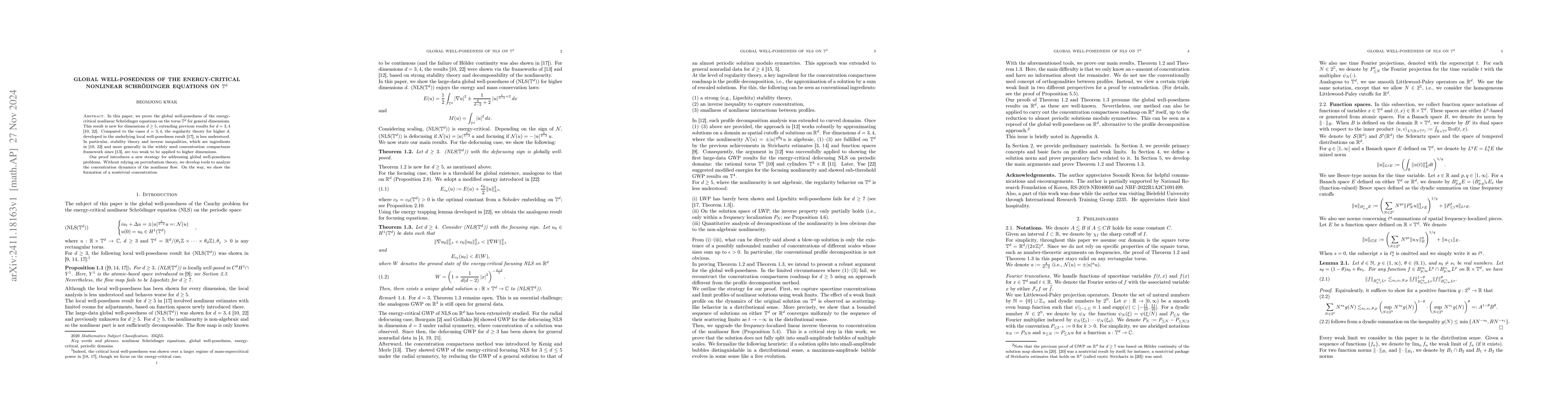 This paper establishes the global well-posedness of energy-critical nonlinear Schrödinger equations on $\mathbb{T}^{d}$ for $d\ge5$, extending previous results for lower dimensions. The authors introduce a novel strategy to analyze the concentration dynamics, overcoming limitations of existing stability theory and inverse inequalities.