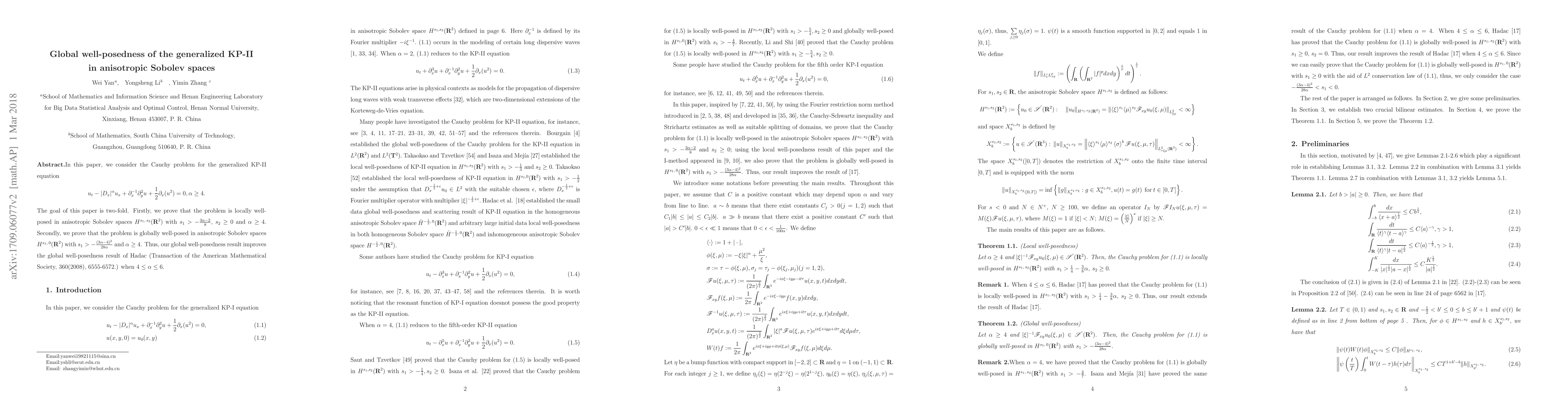 This paper proves local and global well-posedness for the generalized KP-II equation in anisotropic Sobolev spaces. It establishes local well-posedness in spaces H^{s_{1}, s_{2}} with specific conditions on s_{1} and s_{2}, and improves global well-posedness results for certain α values.