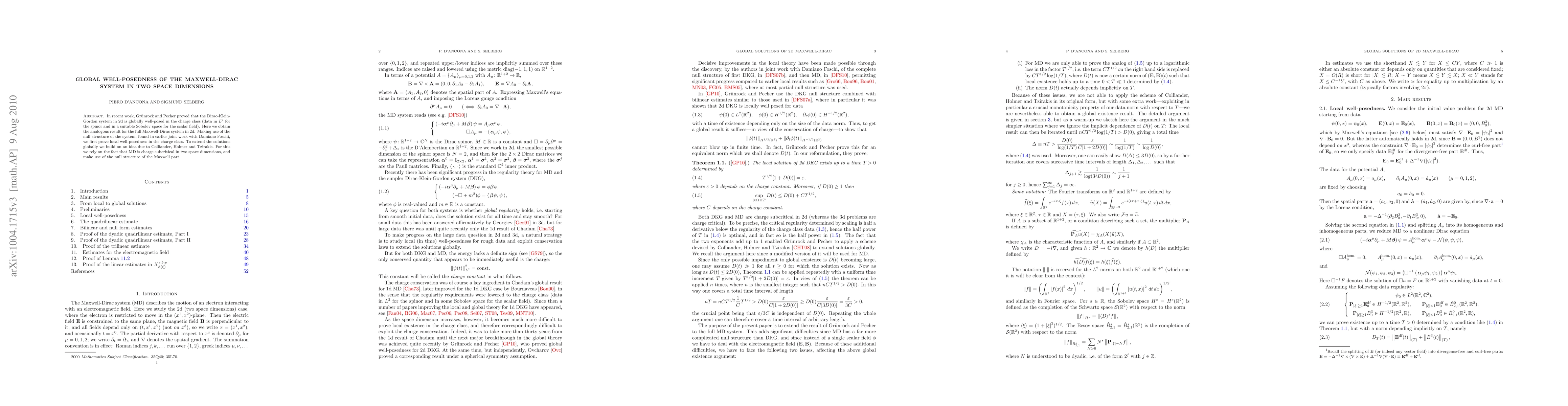 This paper establishes global well-posedness for the Maxwell-Dirac system in two space dimensions, extending previous results for the Dirac-Klein-Gordon system. The authors leverage the null structure of the system and an idea from Colliander, Holmer, and Tzirakis to achieve this, given the charge subcriticality in two dimensions.