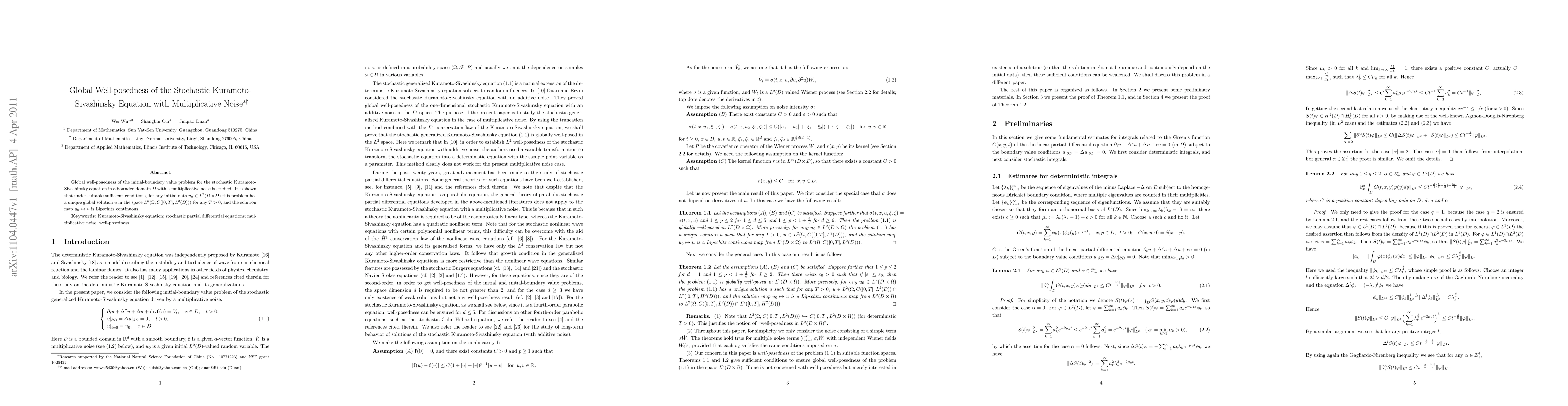 This paper investigates the global well-posedness of the stochastic Kuramoto-Sivashinsky equation in a bounded domain with multiplicative noise. It demonstrates that under certain conditions, the problem has a unique global solution that is Lipschitz continuous.