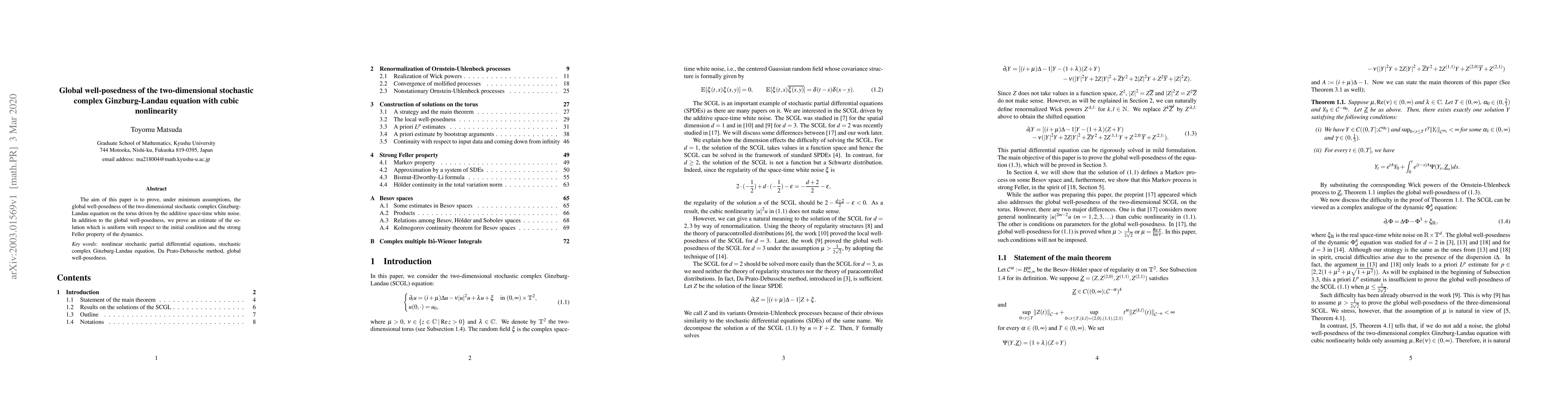 This paper proves global well-posedness for the two-dimensional stochastic complex Ginzburg-Landau equation driven by additive space-time white noise, establishing uniform estimates and the strong Feller property of the dynamics.