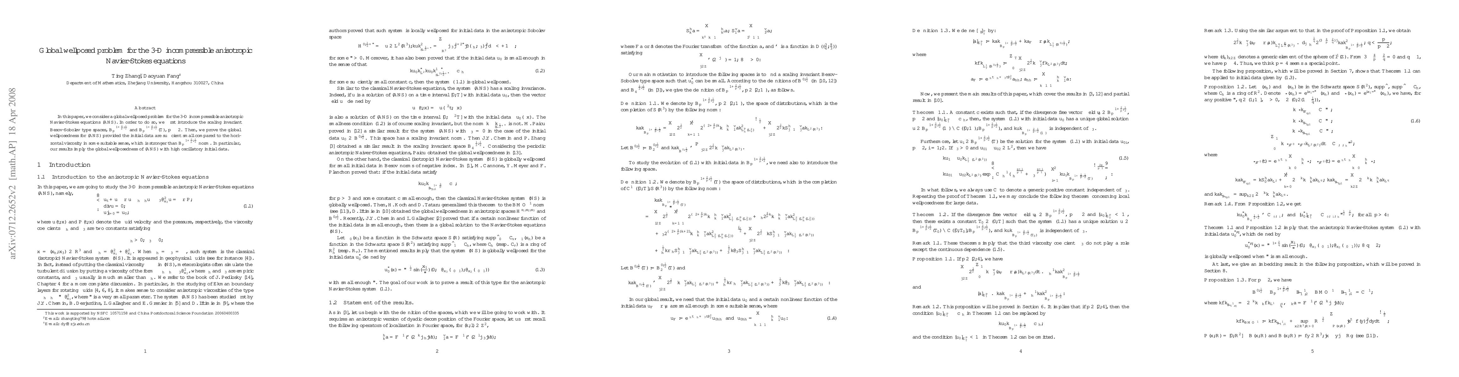 This paper establishes global wellposedness for the 3-D incompressible anisotropic Navier-Stokes equations (ANS) using scaling invariant Besov-Sobolev spaces. It proves that small initial data, particularly those with high oscillatory characteristics, ensure global wellposedness.