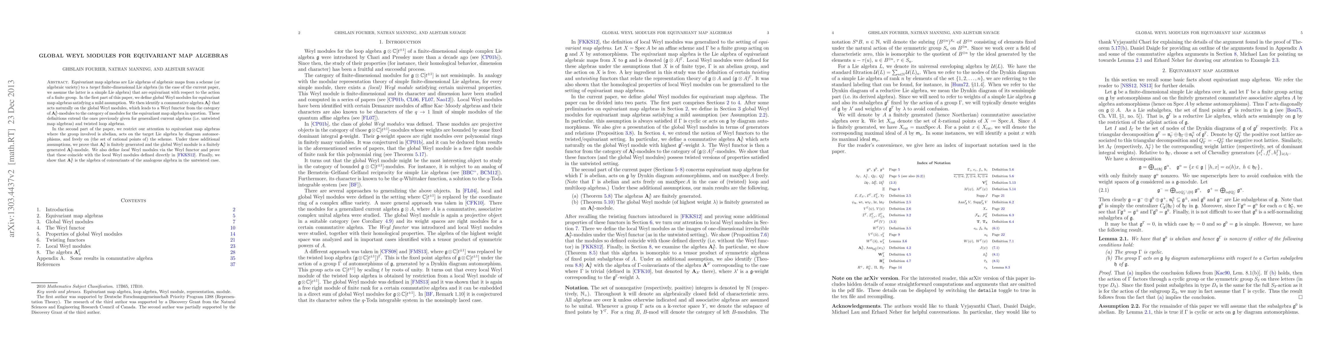 This paper defines global Weyl modules for equivariant map algebras and identifies a commutative algebra A that acts on them, leading to a Weyl functor. It also proves that under certain conditions, A is finitely generated and coincides with the algebra of coinvariants in the untwisted case.