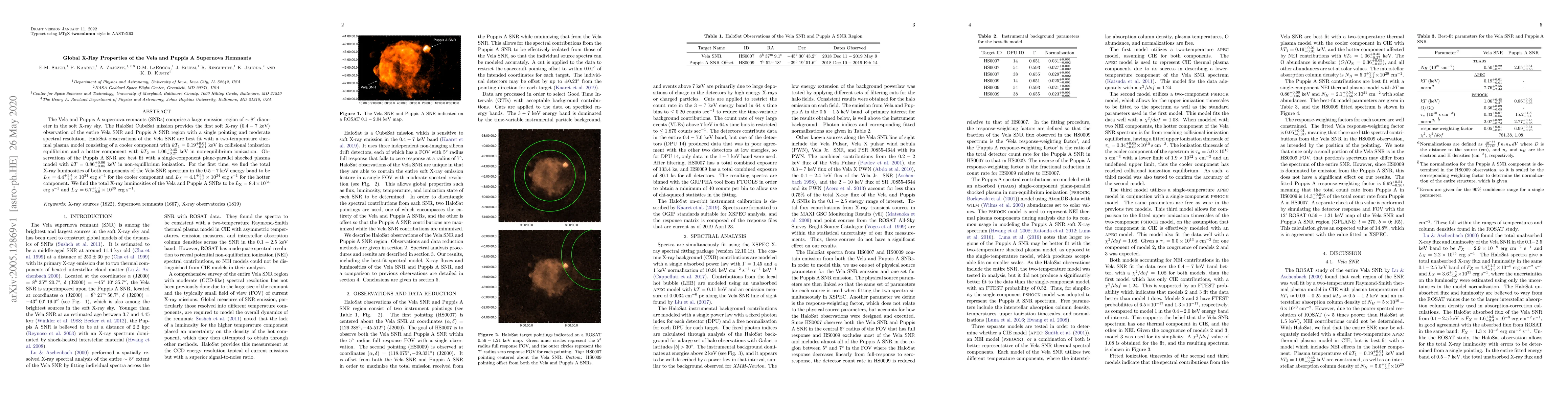 The HaloSat CubeSat mission provides the first soft X-ray observation of the Vela and Puppis A supernova remnants, revealing distinct thermal plasma models for each. The Vela SNR exhibits two-temperature components, while Puppis A SNR shows a single-temperature plasma, with respective total X-ray luminosities of $8.4 \times 10^{34}$ erg s$^{-1}$ and $6.7 \times 10^{36}$ erg s$^{-1}$.