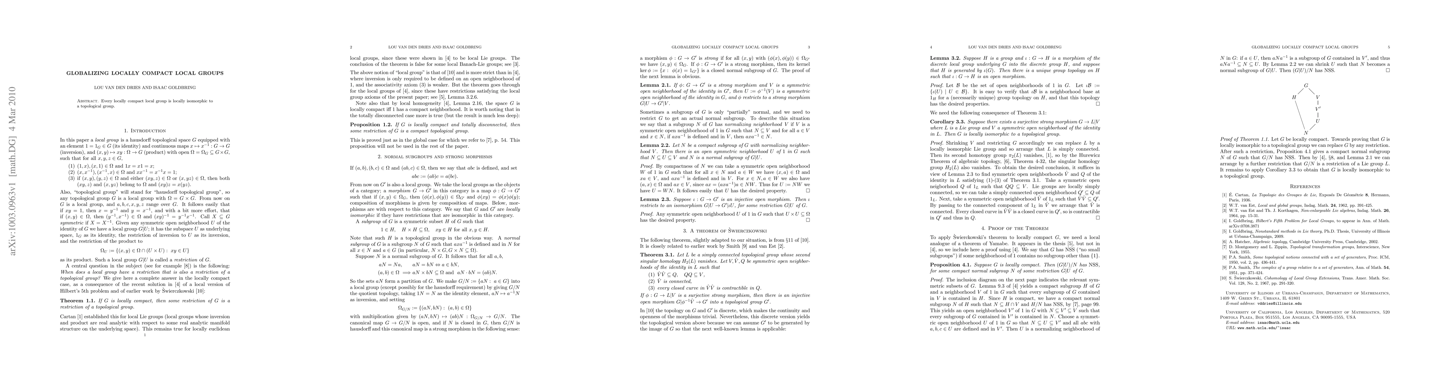 Every locally compact local group is locally isomorphic to a topological group.