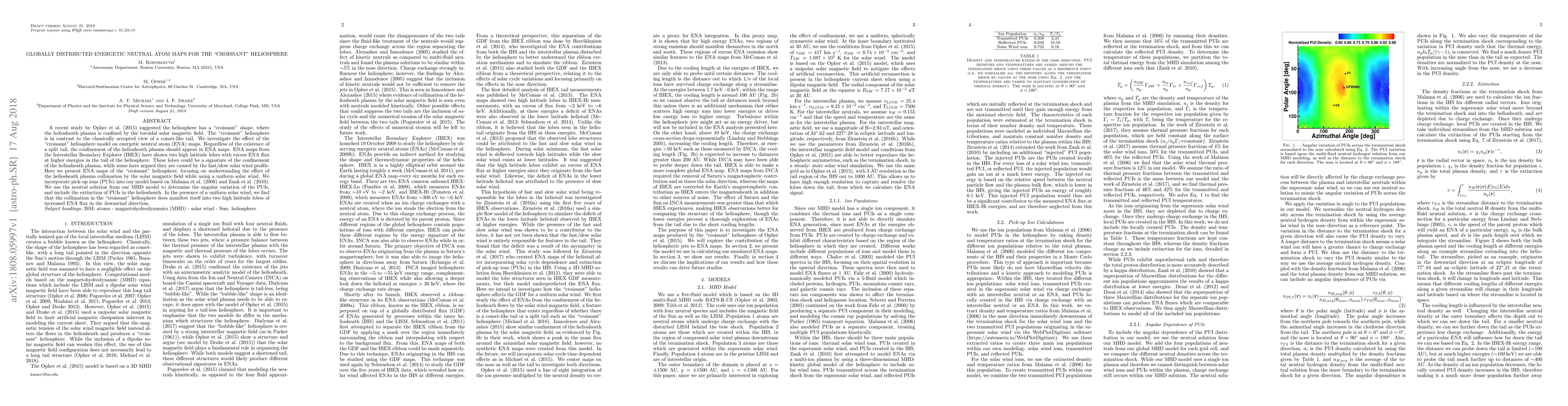 A recent study by Opher et al. (2015) suggested the heliosphere has a "croissant" shape, where the heliosheath plasma is confined by the toroidal solar magnetic field. The "croissant" heliosphere is in contrast to the classically accepted view of a comet-like tail. We investigate the effect of the "croissant" heliosphere model on energetic neutral atom (ENA) maps. Regardless of the existence of a split tail, the confinement of the heliosheath plasma should appear in ENA maps. ENA maps from the Interstellar Boundary Explorer (IBEX) have shown two high latitude lobes with excess ENA flux at higher energies in the tail of the heliosphere. These lobes could be a signature of the confinement of the heliosheath plasma, while some have argued they are caused by the fast/slow solar wind profile. Here we present ENA maps of the "croissant" heliosphere, focusing on understanding the effect of the heliosheath plasma collimation by the solar magnetic field while using a uniform solar wind. We incorporate pick-up ions (PUIs) into our model based on Malama et al. (2006) and Zank et al. (2010). We use the neutral solution from our MHD model to determine the angular variation of the PUIs, and include the extinction of PUIs in the heliosheath. In the presence of a uniform solar wind, we find that the collimation in the "croissant" heliosphere does manifest itself into two high latitude lobes of increased ENA flux in the downwind direction.