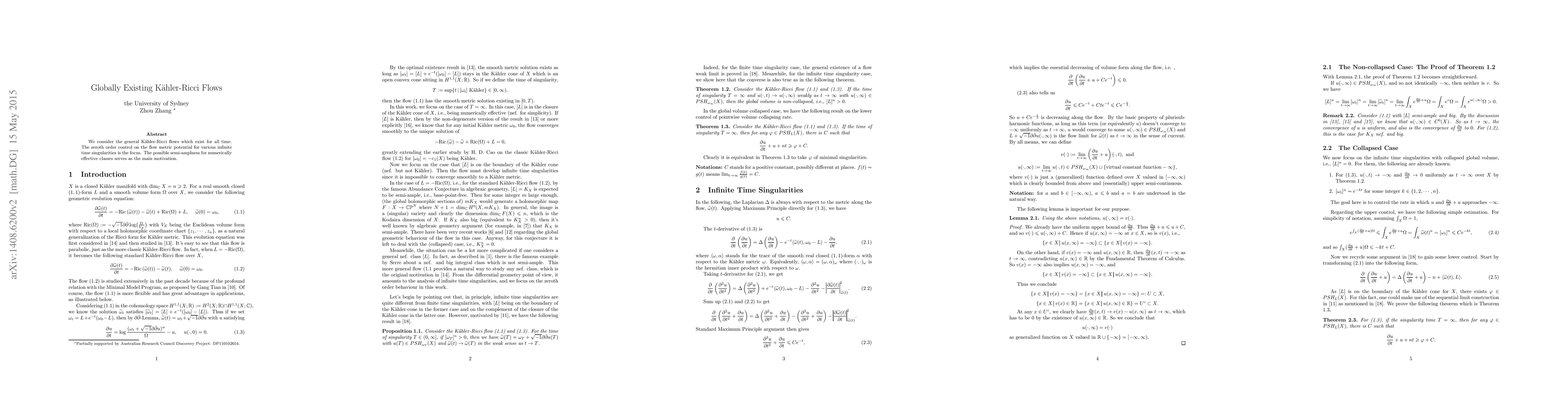 This paper studies long-term behavior of certain geometric flows called Kähler-Ricci flows, focusing on how their properties evolve over infinite time. It explores conditions related to the shape and positivity of underlying spaces that influence these flows' stability and singularities.