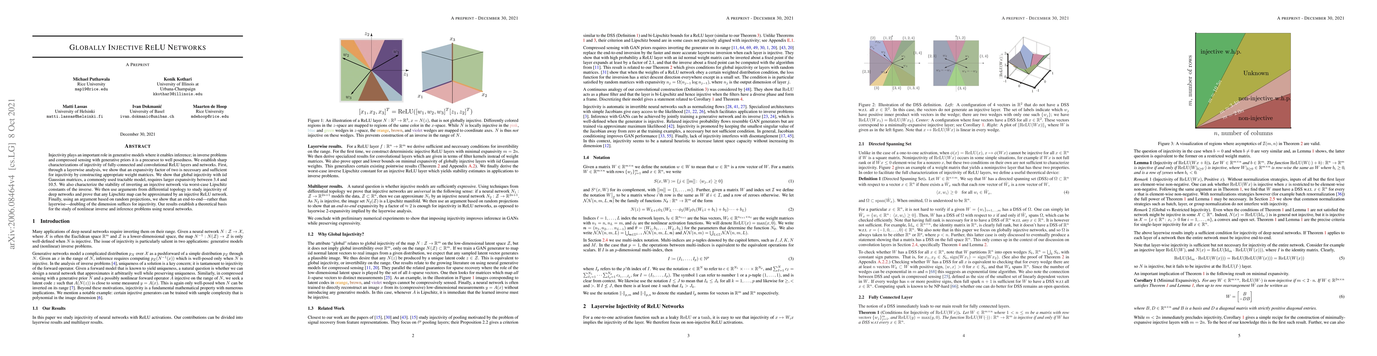 This paper establishes sharp characterizations of injectivity in ReLU networks, showing that an expansivity factor of two is necessary and sufficient for layerwise injectivity. It also demonstrates that global injectivity requires larger expansivity for practical Gaussian weight matrices and provides theoretical foundations for nonlinear inverse problems using neural networks.