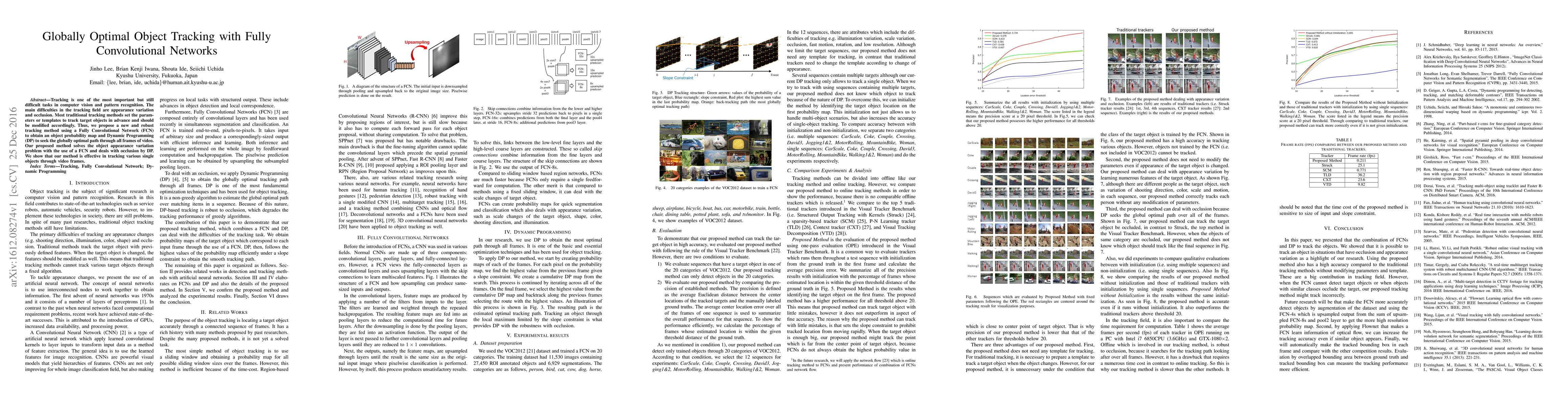 This paper proposes a robust tracking method using Fully Convolutional Networks (FCN) for generating an object probability map and Dynamic Programming (DP) to find the globally optimal path through video frames. The FCN addresses appearance variation, while DP handles occlusion, demonstrating effective single object tracking across video frames.