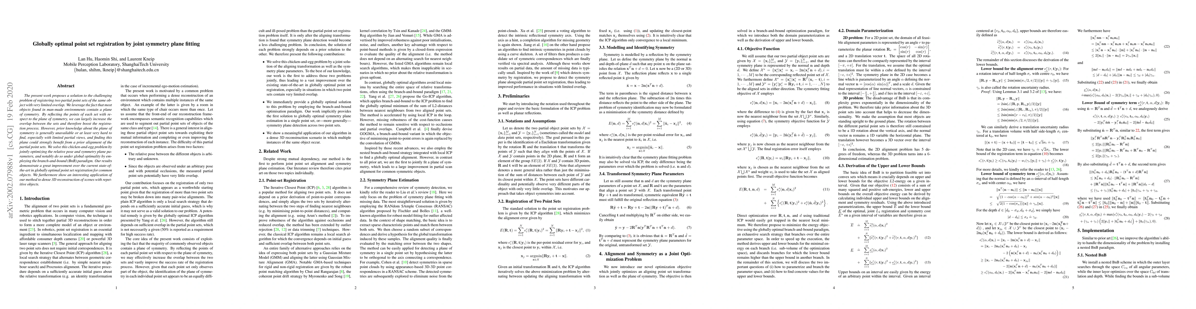 The present work proposes a solution to the challenging problem of registering two partial point sets of the same object with very limited overlap. We leverage the fact that most objects found in man-made environments contain a plane of symmetry. By reflecting the points of each set with respect to the plane of symmetry, we can largely increase the overlap between the sets and therefore boost the registration process. However, prior knowledge about the plane of symmetry is generally unavailable or at least very hard to find, especially with limited partial views, and finding this plane could strongly benefit from a prior alignment of the partial point sets. We solve this chicken-and-egg problem by jointly optimizing the relative pose and symmetry plane parameters, and notably do so under global optimality by employing the branch-and-bound (BnB) paradigm. Our results demonstrate a great improvement over the current state-of-the-art in globally optimal point set registration for common objects. We furthermore show an interesting application of our method to dense 3D reconstruction of scenes with repetitive objects.