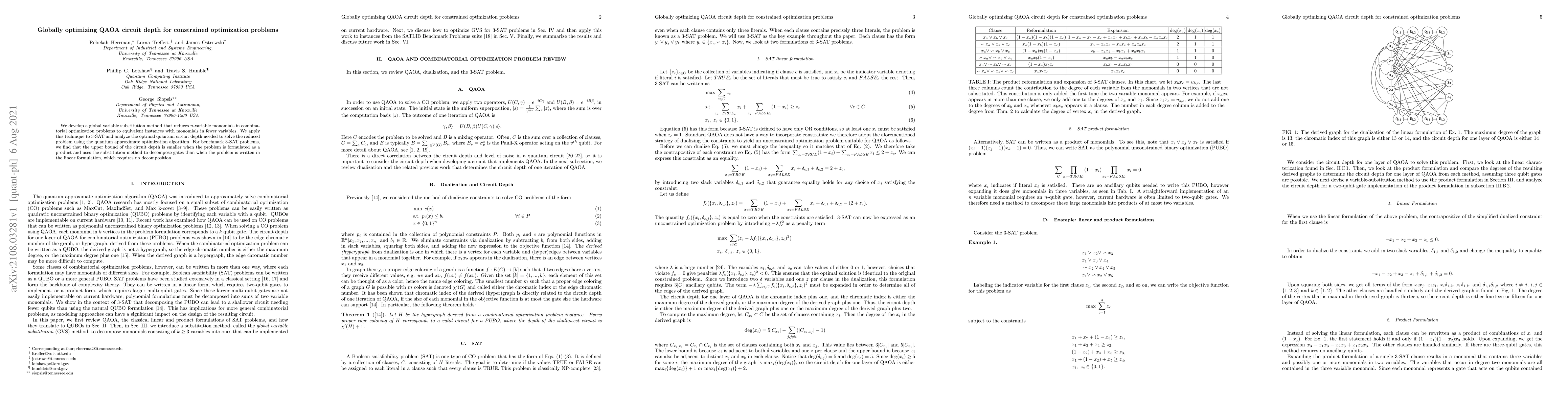 Researchers optimize QAOA circuit depth for 3-SAT problems by reducing variable monomials, finding that product formulation with variable substitution yields a smaller upper bound on circuit depth.