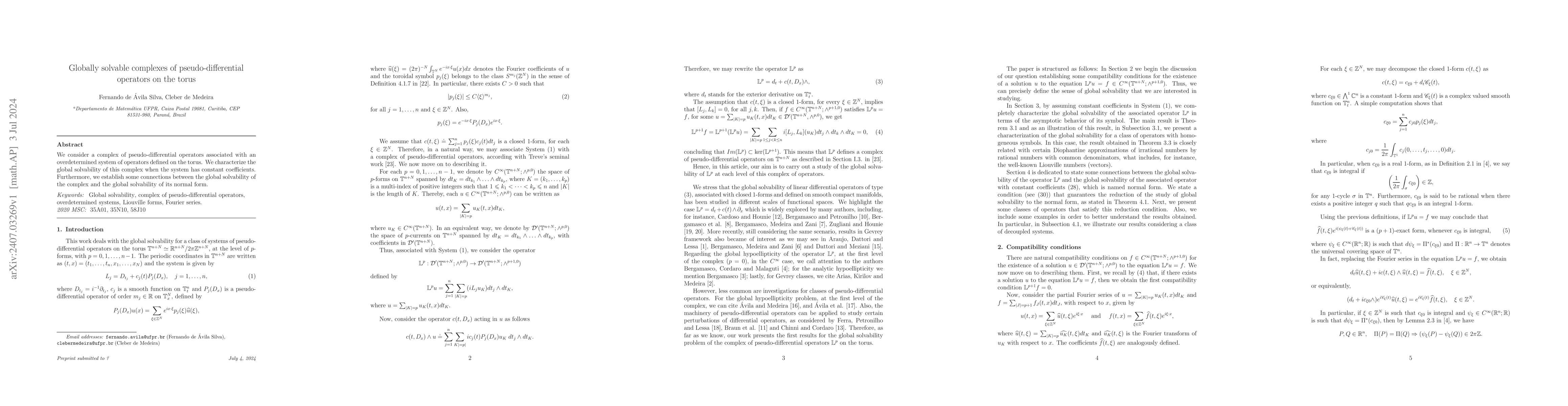 Summary: This paper studies a complex of pseudo-differential operators on the torus with constant coefficients, characterizing its global solvability and exploring connections between this solvability and that of its normal form.
