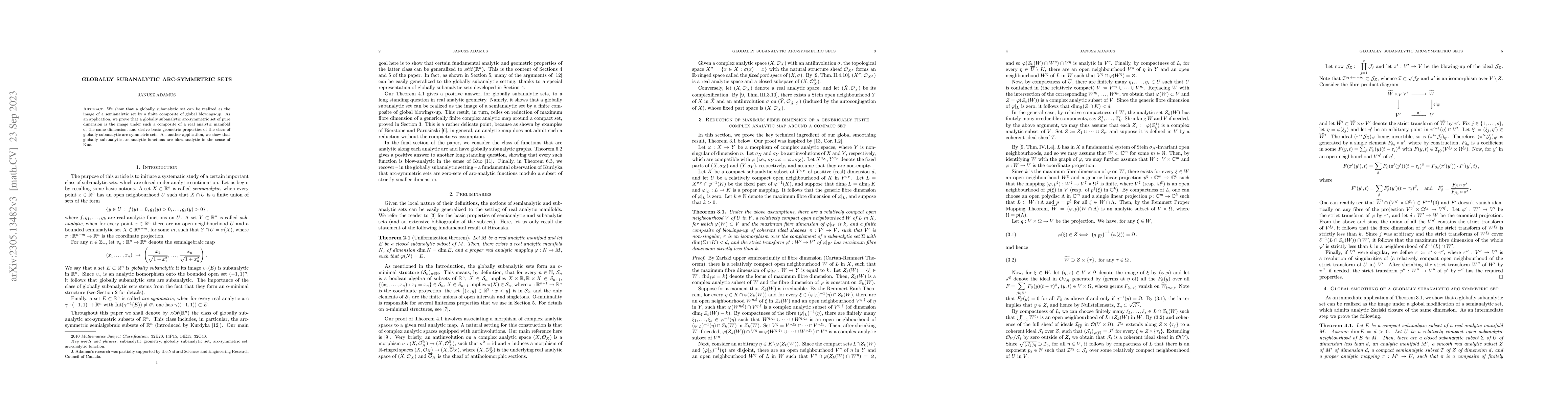 This paper demonstrates that globally subanalytic sets can be represented as images of semianalytic sets via finite composites of global blowings-up. It also establishes that globally subanalytic arc-symmetric sets of pure dimension are images of real analytic manifolds of the same dimension, and explores their geometric properties.