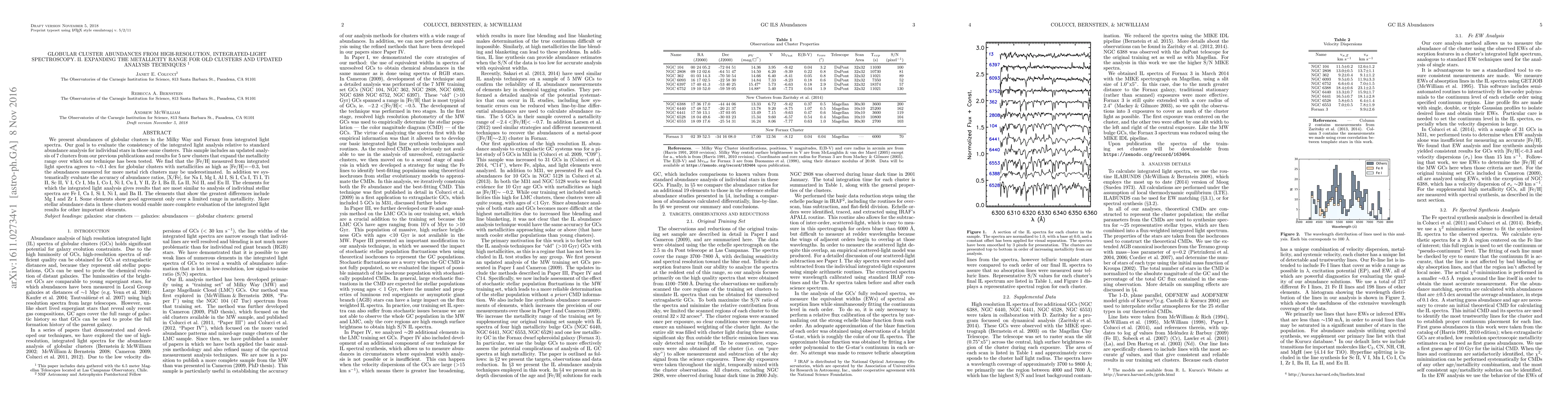 This paper presents integrated-light spectroscopy abundances for 12 globular clusters, including 7 previously analyzed and 5 new, expanding the metallicity range. The study finds that integrated light spectra provide accurate [Fe/H] measurements up to [Fe/H] = -0.3, though more metal-rich clusters may be underestimated, and highlights elements like Fe I, Ca I, and Ni I that show good agreement with individual stellar spectra.