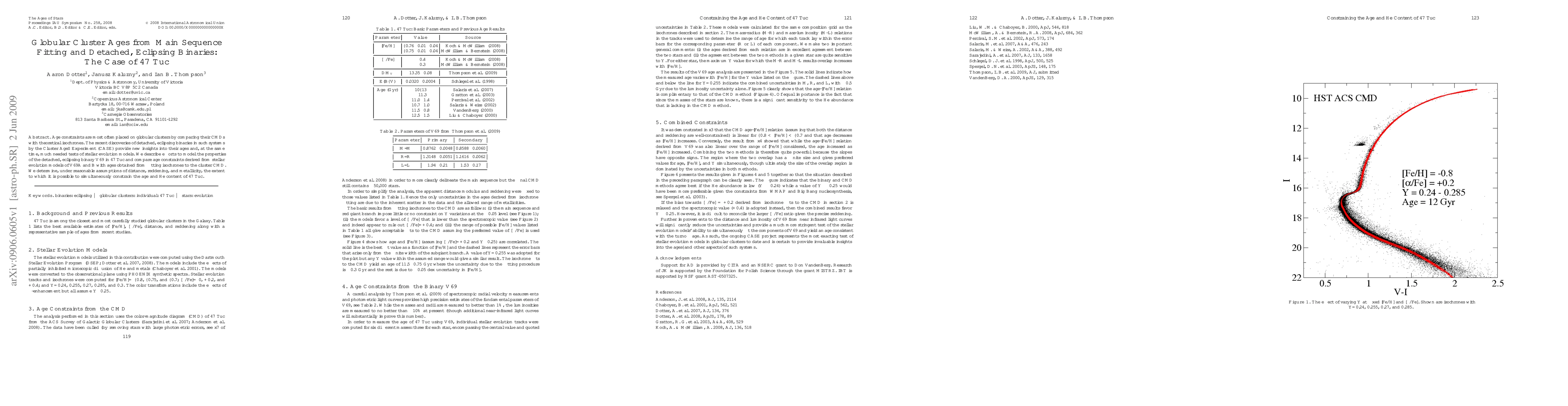 Age constraints are most often placed on globular clusters by comparing their CMDs with theoretical isochrones. The recent discoveries of detached, eclipsing binaries in such systems by the Cluster AgeS Experiment (CASE) provide new insights into their ages and, at the same time, much needed tests of stellar evolution models. We describe efforts to model the properties of the detached, eclipsing binary V69 in 47 Tuc and compare age constraints derived from stellar evolution models of V69A and B with ages obtained from fitting isochrones to the cluster CMD. We determine, under reasonable assumptions of distance, reddening, and metallicity, the extent to which it is possible to simultaneously constrain the age and He content of 47 Tuc.