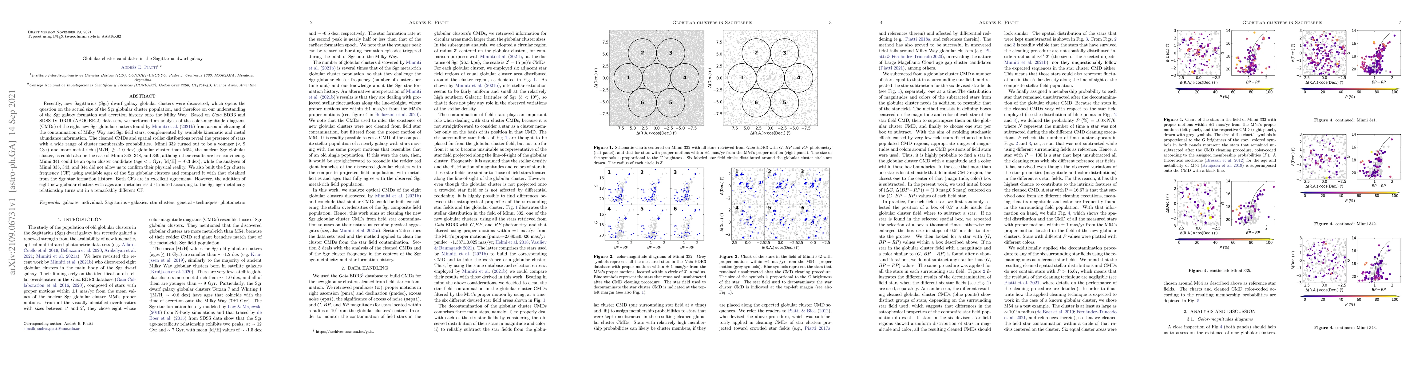 Recently, new Sagittarius (Sgr) dwarf galaxy globular clusters were discovered, which opens the question on the actual size of the Sgr globular cluster population, and therefore on our understanding of the Sgr galaxy formation and accretion history onto the Milky Way. Based on Gaia EDR3 and SDSS IV DR16 (APOGEE-2) data sets, we performed an analysis of the color-magnitude diagrams (CMDs) of the eight new Sgr globular clusters found by from a sound cleaning of the contamination of Milky Way and Sgr field stars, complemented by Minniti et al. (2021b) available kinematic and metal abundance information. The cleaned CMDs and spatial stellar distributions reveal the presence of stars with a wide range of cluster membership probabilities. Minni 332 turned out to be a younger (< 9 Gyr) and more metal-rich ([M/H] > -1.0 dex) globular cluster than M54, the nuclear Sgr globular cluster, as could also be the case of Minni 342, 348, and 349, although their results are less convincing. Minni 341 could be an open cluster candidate (age < 1 Gyr, [M/H] ~ -0.3 dex), while the analyses of Minni 335, 343, and 344 did not allow us to confirm their physical reality. We also built the Sgr cluster frequency (CF) using available ages of the Sgr globular clusters and compared it with that obtained from the Sgr star formation history. Both CFs are in excellent agreement. However, the addition of eight new globular clusters with ages and metallicities distributed according to the Sgr age-metallicity relationship turns out in a remarkably different CF.
