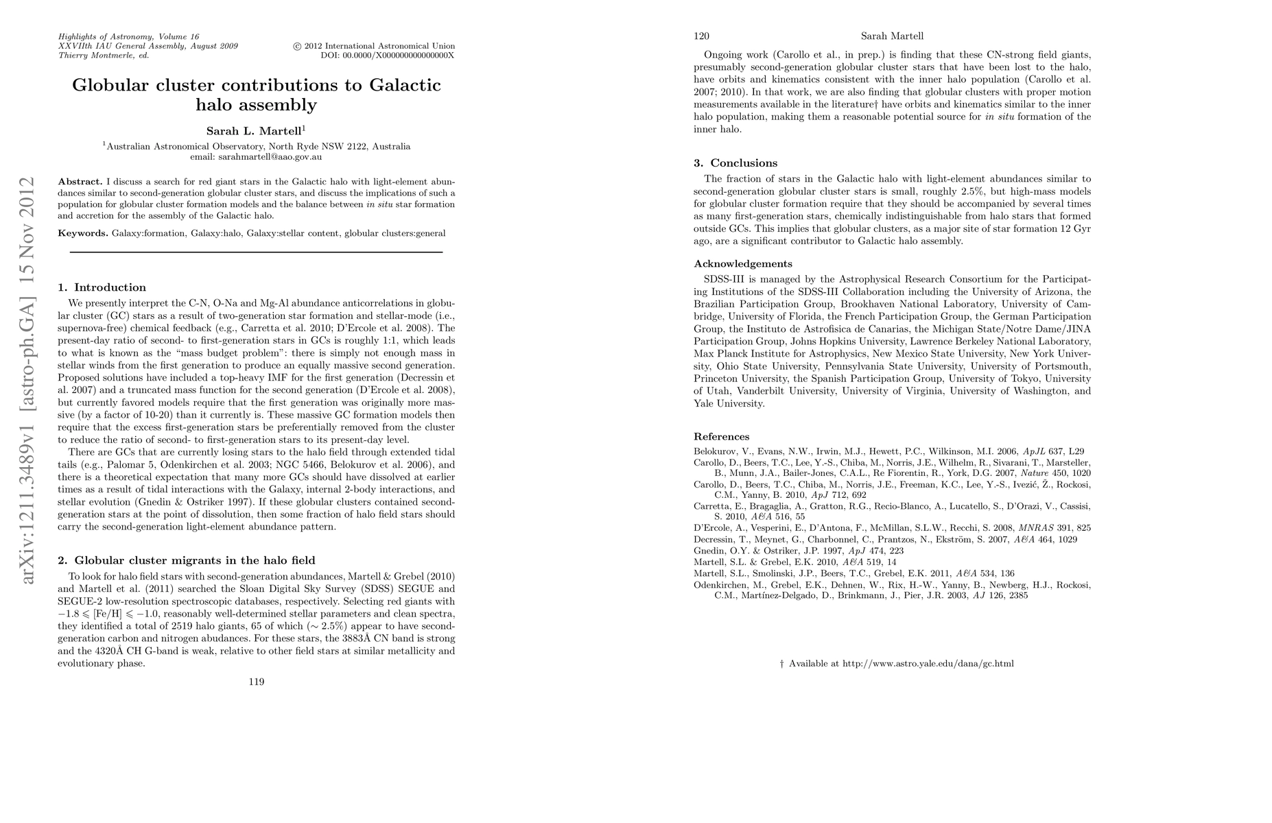 This paper investigates red giant stars in the Galactic halo with light-element abundances akin to second-generation globular cluster stars, suggesting a new population that impacts globular cluster formation models and the debate over in situ star formation versus accretion in the assembly of the Galactic halo.