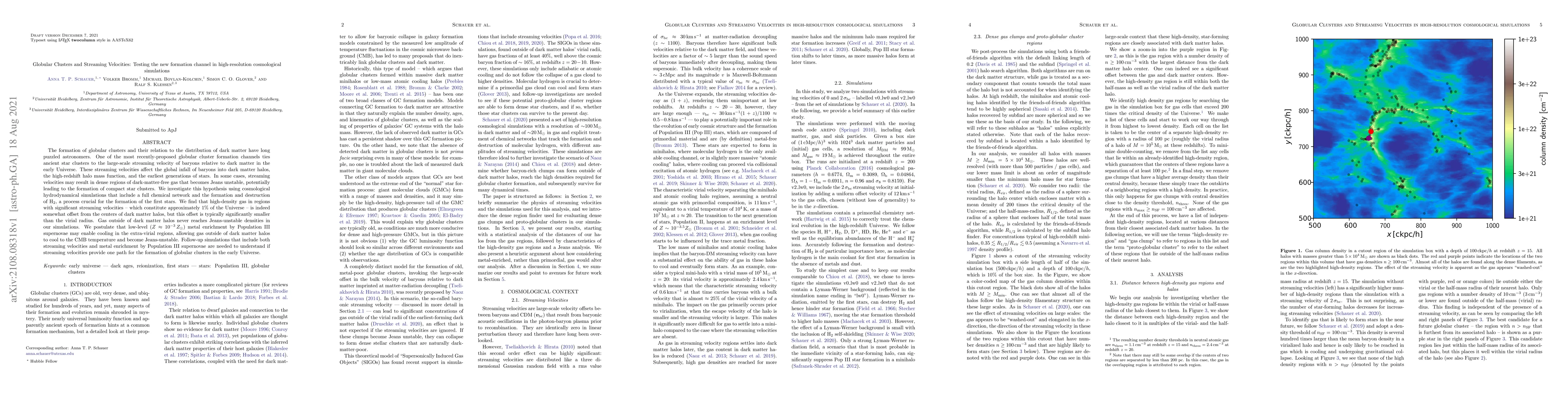 This paper explores the hypothesis that globular cluster formation is linked to the streaming velocities of baryons relative to dark matter in the early Universe. Simulations show that high-density gas in regions with significant streaming velocities can form dense regions, but this offset is small compared to the virial radius. Further simulations incorporating metal enrichment from Population III supernovae are needed to determine if streaming velocities contribute to globular cluster formation.