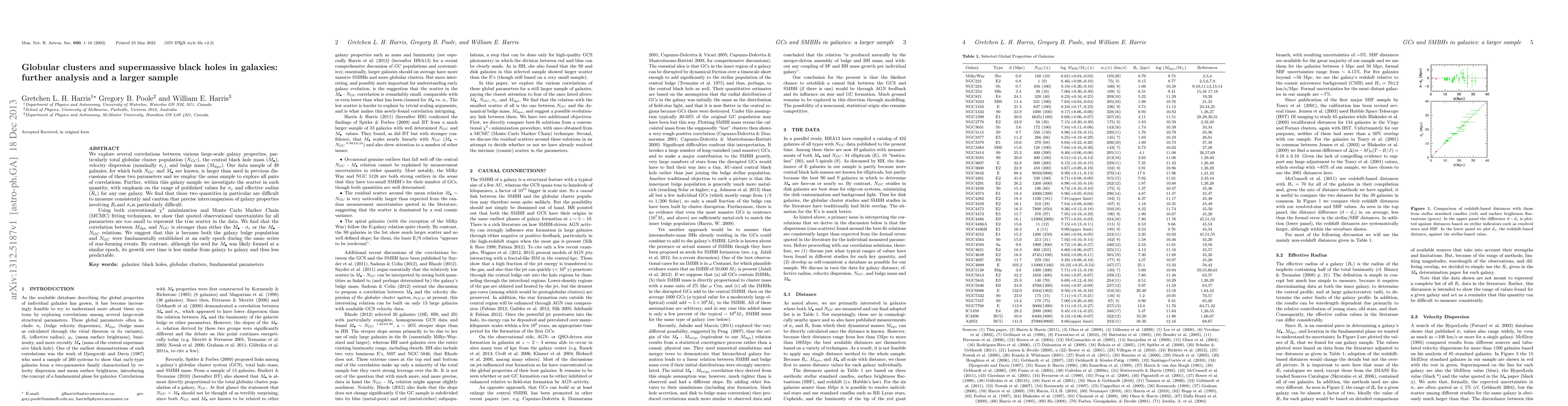 We explore several correlations between various large-scale galaxy properties, particularly total globular cluster population (N_GCS), the central black hole mass (M_BH), velocity dispersion (nominally sigma_e), and bulge mass (M_dyn). Our data sample of 49 galaxies, for which both N_GC and M_BH are known, is larger than used in previous discussions of these two parameters and we employ the same sample to explore all pairs of correlations. Further, within this galaxy sample we investigate the scatter in each quantity, with emphasis on the range of published values for sigma_e and effective radius (R_e). We find that these two quantities in particular are difficult to measure consistently and caution that precise intercomparison of galaxy properties involving R_e and sigma_e is particularly difficult. Using both chi^2 and Monte Carlo Markov Chain (MCMC) fitting techniques, we show that quoted observational uncertainties for all parameters are too small to represent the true scatter in the data. We find that the correlation between M_dyn and N_GC is stronger than either the M_BH-sigma_e or M_BH-N_GC relations. We suggest that this is because both the galaxy bulge population ans N_GC were fundamentally established at an early epoch during the same series of star-forming events. By contrast, although the seed for M_BH was likely formed at a similar epoch, its growth over time is less similar from galaxy to galaxy and thus less predictable.