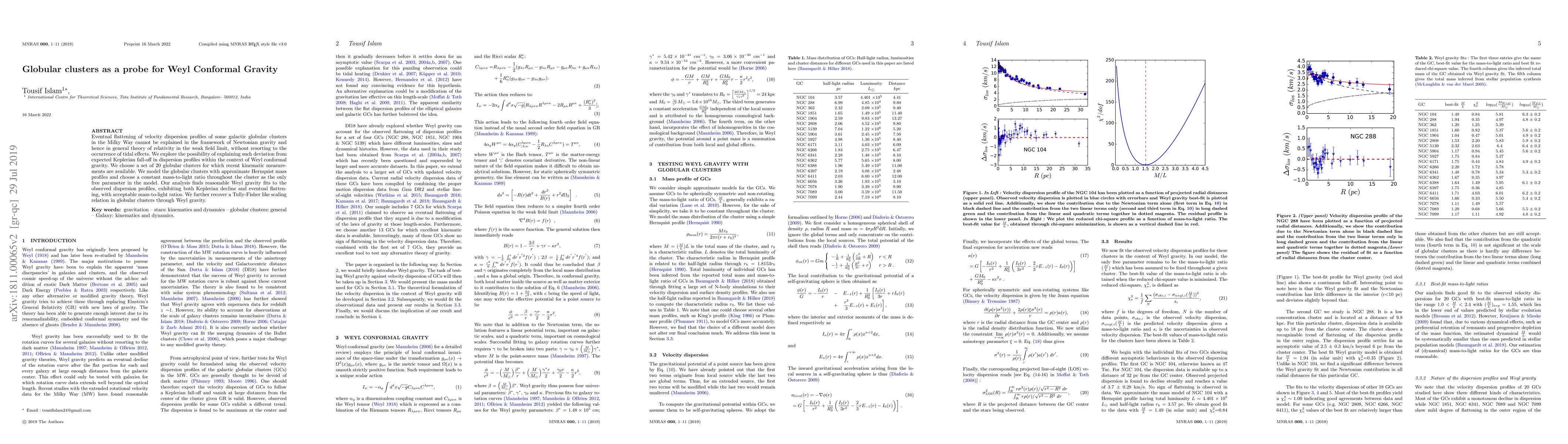 This paper investigates whether Weyl conformal gravity can explain the flattening of velocity dispersion profiles in galactic globular clusters, which cannot be accounted for by Newtonian gravity or general relativity. The study finds that Weyl gravity provides reasonable fits to observed profiles and recovers a Tully-Fisher-like scaling relation.