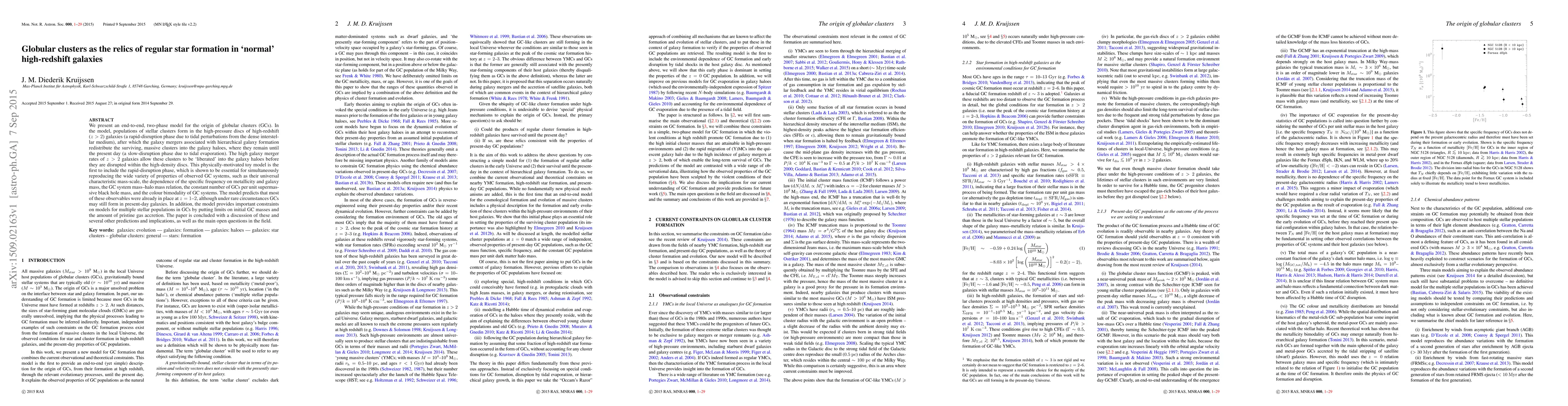 We present an end-to-end, two-phase model for the origin of globular clusters (GCs). In the model, populations of stellar clusters form in the high-pressure discs of high-redshift ($z>2$) galaxies (a rapid-disruption phase due to tidal perturbations from the dense interstellar medium), after which the galaxy mergers associated with hierarchical galaxy formation redistribute the surviving, massive clusters into the galaxy haloes, where they remain until the present day (a slow-disruption phase due to tidal evaporation). The high galaxy merger rates of $z>2$ galaxies allow these clusters to be `liberated' into the galaxy haloes before they are disrupted within the high-density discs. This physically-motivated toy model is the first to include the rapid-disruption phase, which is shown to be essential for simultaneously reproducing the wide variety of properties of observed GC systems, such as their universal characteristic mass-scale, the dependence of the specific frequency on metallicity and galaxy mass, the GC system mass-halo mass relation, the constant number of GCs per unit supermassive black hole mass, and the colour bimodality of GC systems. The model predicts that most of these observables were already in place at $z=1$-$2$, although under rare circumstances GCs may still form in present-day galaxies. In addition, the model provides important constraints on models for multiple stellar populations in GCs by putting limits on initial GC masses and the amount of pristine gas accretion. The paper is concluded with a discussion of these and several other predictions and implications, as well as the main open questions in the field.