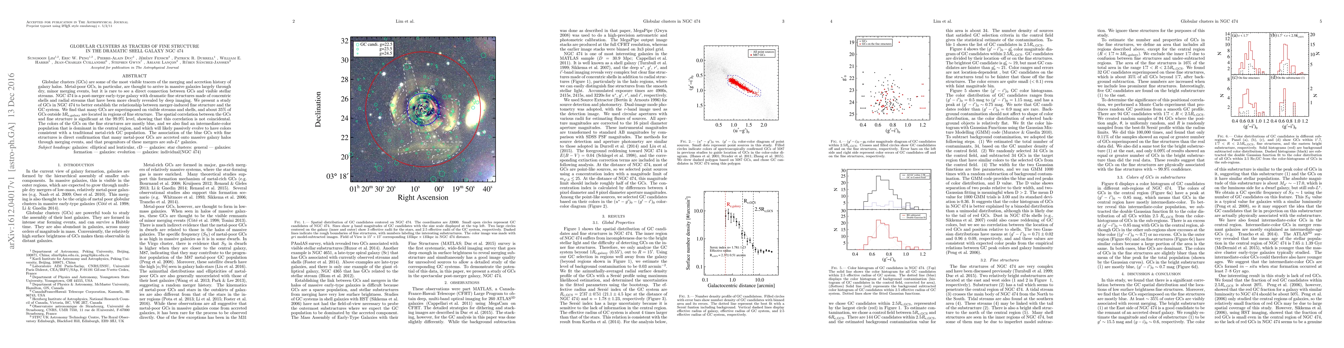 A study of globular clusters in NGC 474 reveals that many GCs are associated with fine structures made of concentric shells and radial streams, confirming that metal-poor GCs are accreted onto massive galaxy halos through merging events.