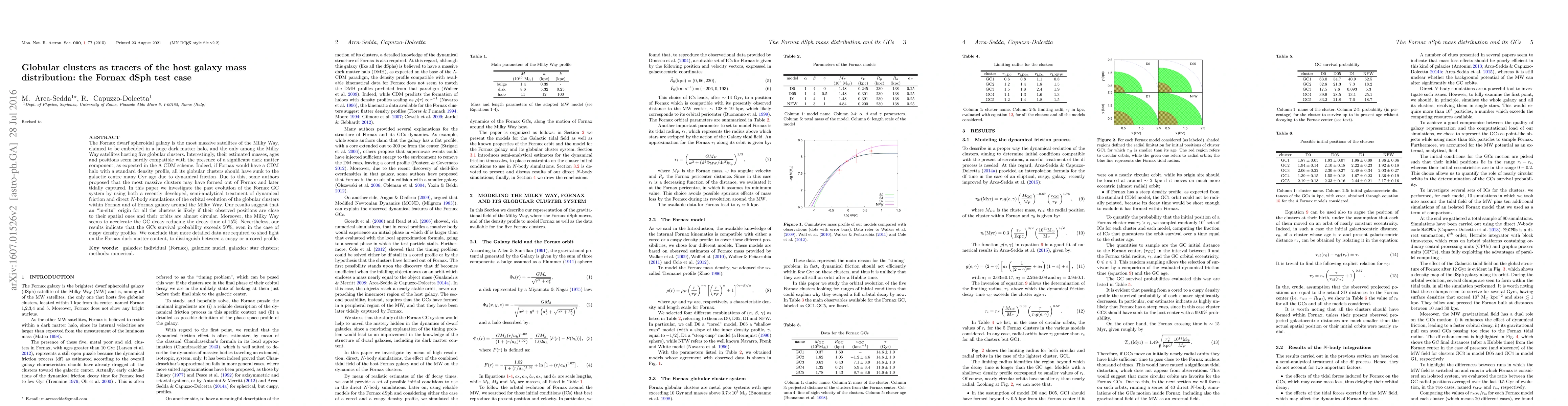 The Fornax dwarf spheroidal galaxy is the most massive satellites of the Milky Way, claimed to be embedded in a huge dark matter halo, and the only among the Milky Way satellites hosting five globular clusters. Interestingly, their estimated masses, ages and positions seem hardly compatible with the presence of a significant dark matter component, as expected in the $\Lambda$ CDM scheme. Indeed, if Fornax would have a CDM halo with a standard density profile, all its globular clusters should have sunk to the galactic centre many Gyr ago due to dynamical friction. Due to this, some authors proposed that the most massive clusters may have formed out of Fornax and later tidally captured. In this paper we investigate the past evolution of the Fornax GC system by using both a recently developed, semi-analytical treatment of dynamical friction and direct $N$-body simulations of the orbital evolution of the globular clusters within Fornax and of Fornax galaxy around the Milky Way. Our results suggest that an "in-situ" origin for all the clusters is likely if their observed positions are close to their spatial ones and their orbits are almost circular. Moreover, the Milky Way seems to accelerate the GC decay reducing the decay time of $15\%$. Nevertheless, our results indicate that the GCs survival probability exceeds $50\%$, even in the case of cuspy density profiles. We conclude that more detailed data are required to shed light on the Fornax dark matter content, to distinguish between a cuspy or a cored profile.
