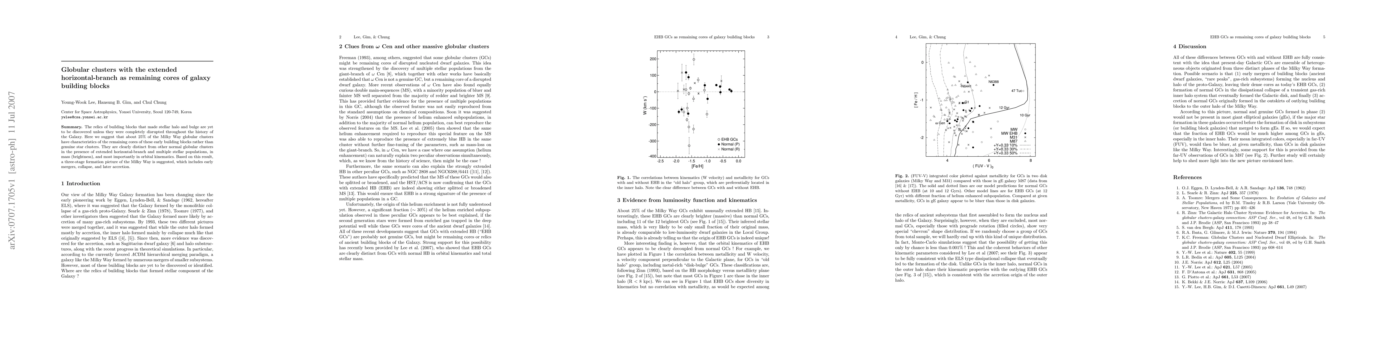 This paper proposes that approximately 25% of Milky Way globular clusters are remnants of early galaxy building blocks, characterized by extended horizontal-branch and multiple stellar populations, rather than typical star clusters. This suggests a three-stage formation model for the Milky Way involving early mergers, collapse, and later accretion.