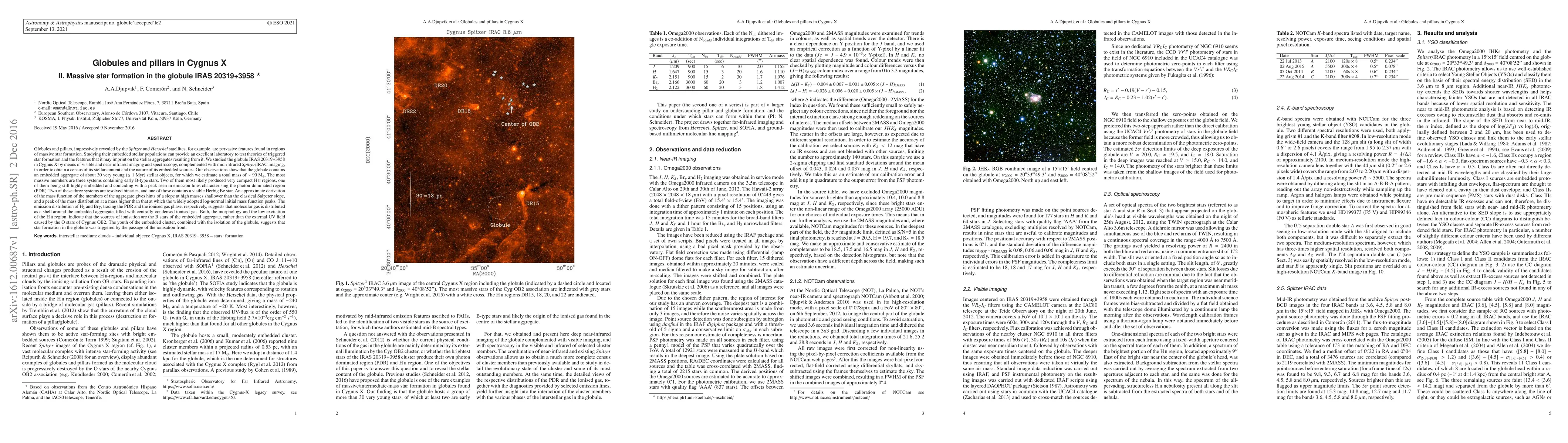 This paper investigates the globule IRAS 20319+3958 in Cygnus X, revealing it contains about 30 young stellar objects, including early B-type stars, suggesting massive star formation. The study suggests star formation was triggered by the ionisation front, likely from the nearby Cygnus OB2.