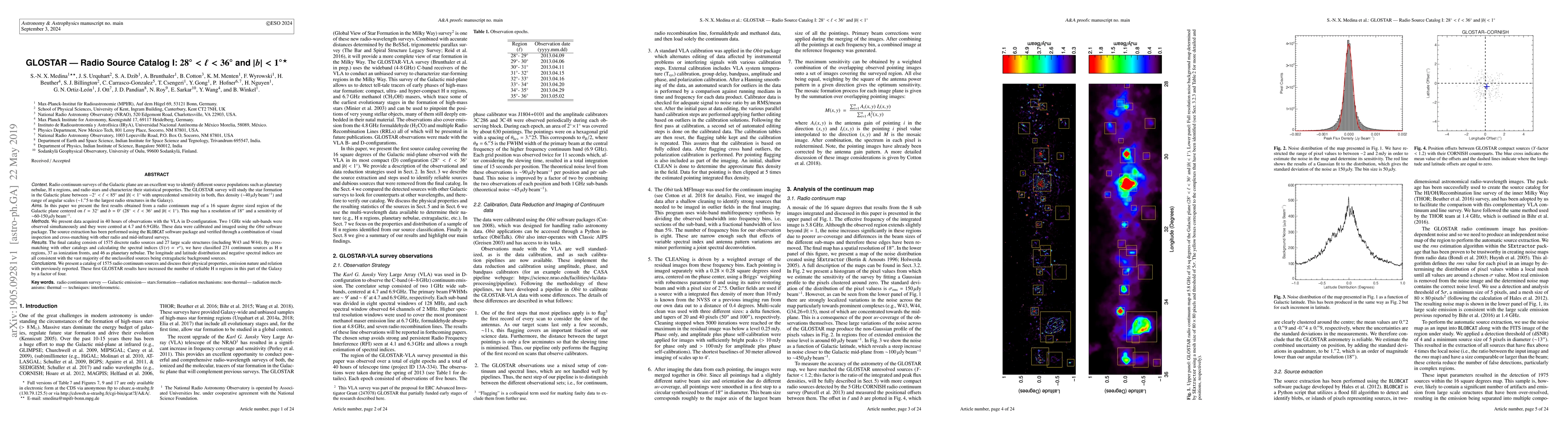 The GLOSTAR survey provides a detailed radio continuum map of a 16 square degree region in the Galactic plane, revealing 1575 discrete radio sources and 27 large structures. The catalog includes classifications of sources as HII regions, ionization fronts, and planetary nebulae, with most unclassified sources likely extragalactic.