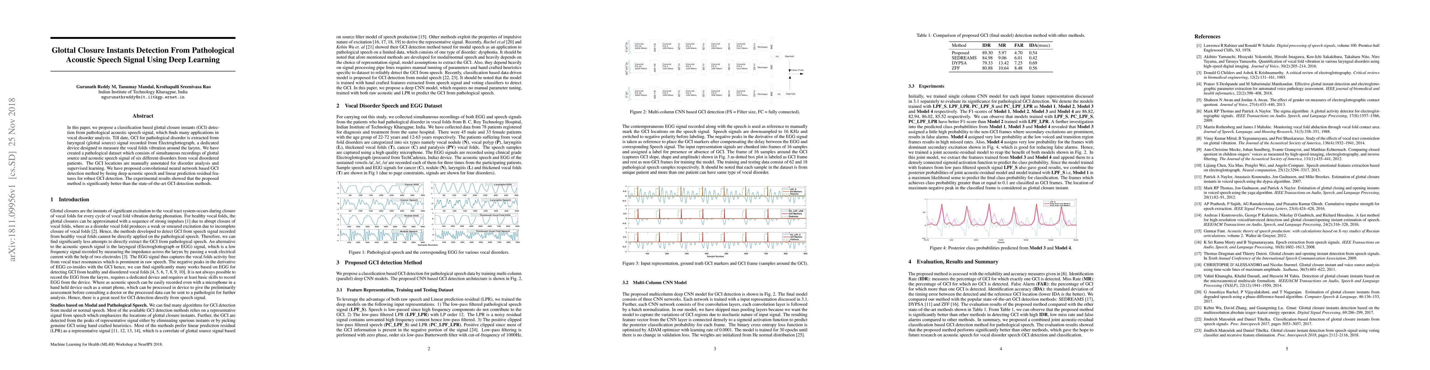 This paper proposes a convolutional neural network for detecting glottal closure instants (GCI) in pathological speech signals, using deep learning to fuse acoustic and linear prediction features. The method outperforms existing techniques, offering improved analysis for vocal disorder identification.