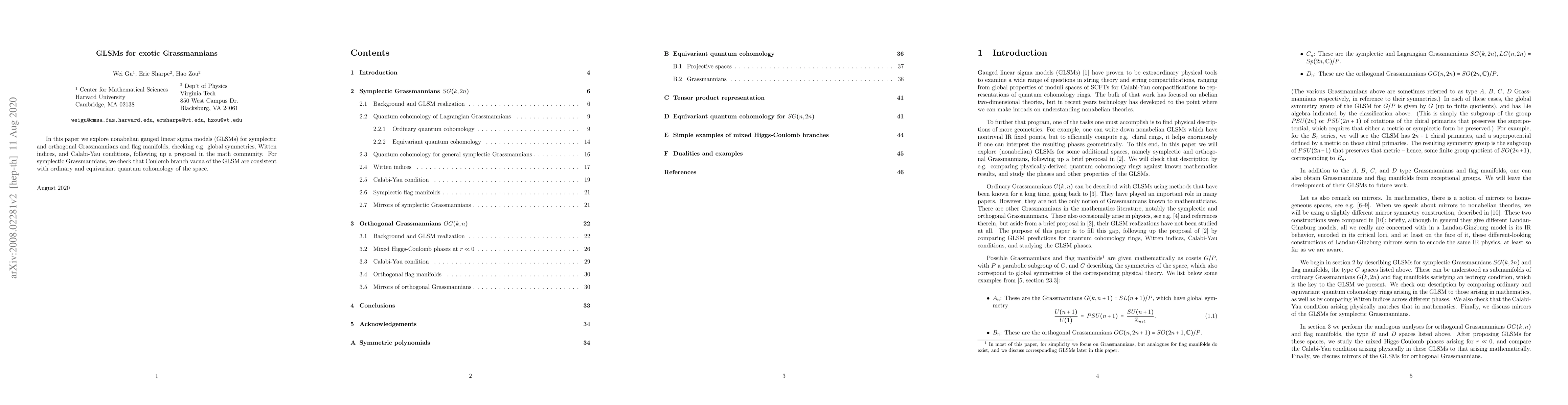 In this paper we explore nonabelian gauged linear sigma models (GLSMs) for symplectic and orthogonal Grassmannians and flag manifolds, checking e.g. global symmetries, Witten indices, and Calabi-Yau conditions, following up a proposal in the math community. For symplectic Grassmannians, we check that the Coulomb branch vacua of the GLSM are consistent with ordinary and equivariant quantum cohomology of the space.
