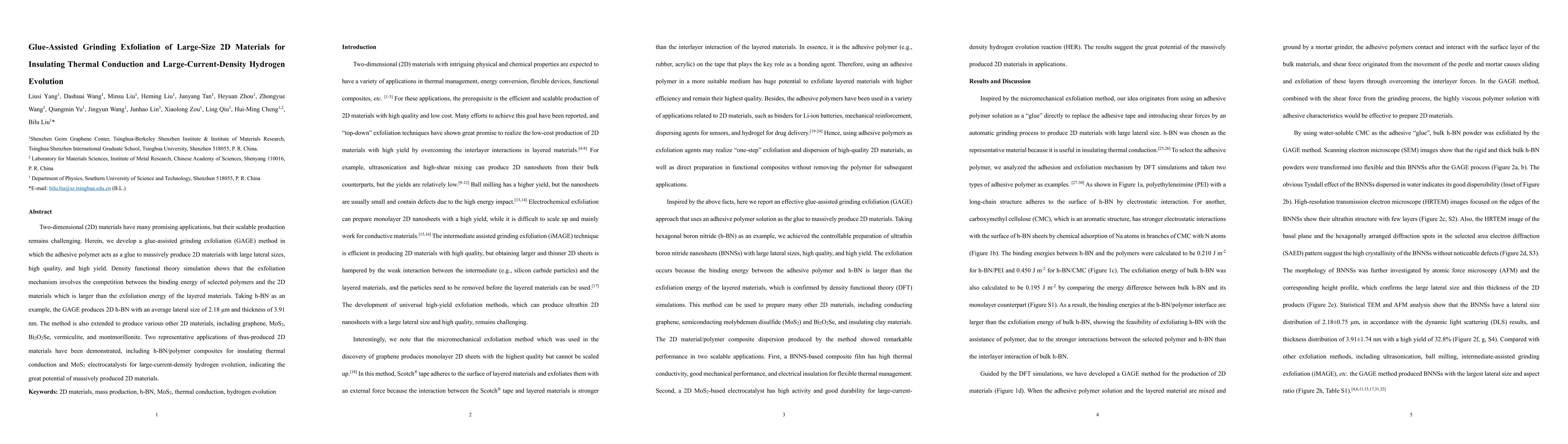 A new method called Glue-Assisted Grinding Exfoliation (GAGE) produces large-sized 2D materials with high quality and yield, enabling applications like insulating thermal conduction and hydrogen evolution.