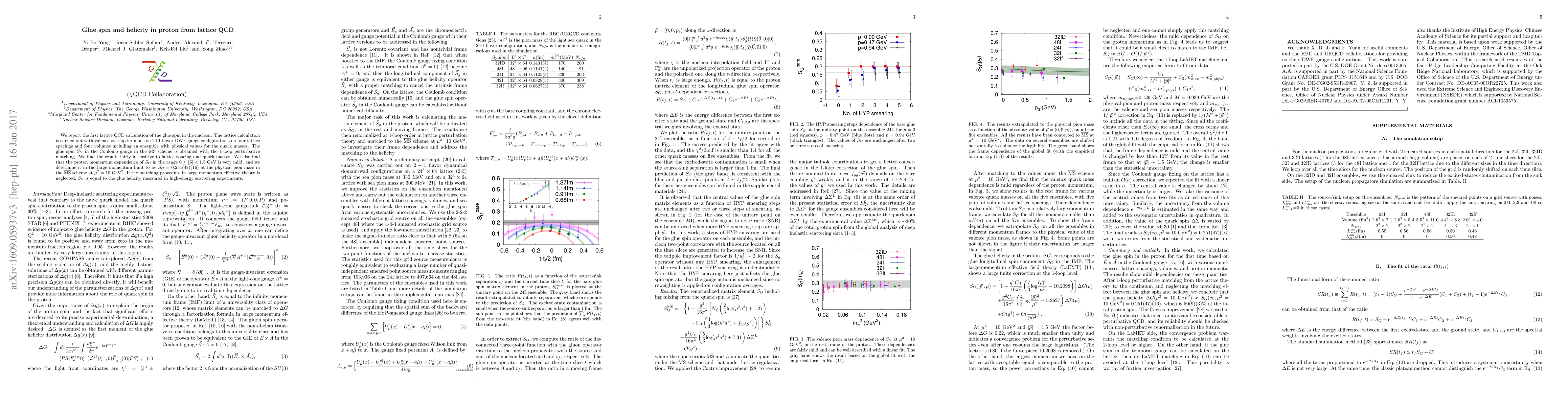This paper presents the first lattice QCD calculation of the glue spin ($S_G$) in the proton, finding it to be $S_{G}=0.251(47)(16)$ in the large momentum limit. The results are shown to be stable across different lattice spacings and quark masses.