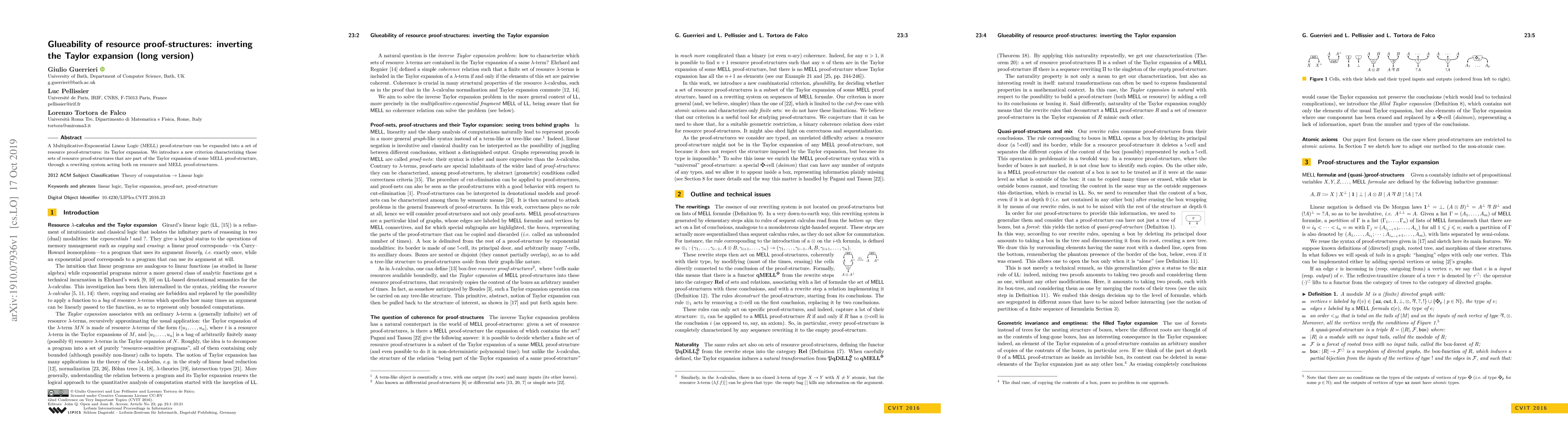 Summary: This paper introduces a new criterion for identifying sets of resource proof-structures that are part of the Taylor expansion of a Multiplicative-Exponential Linear Logic proof-structure. It utilizes a rewriting system to characterize these sets, facilitating the inversion of the Taylor expansion process.
