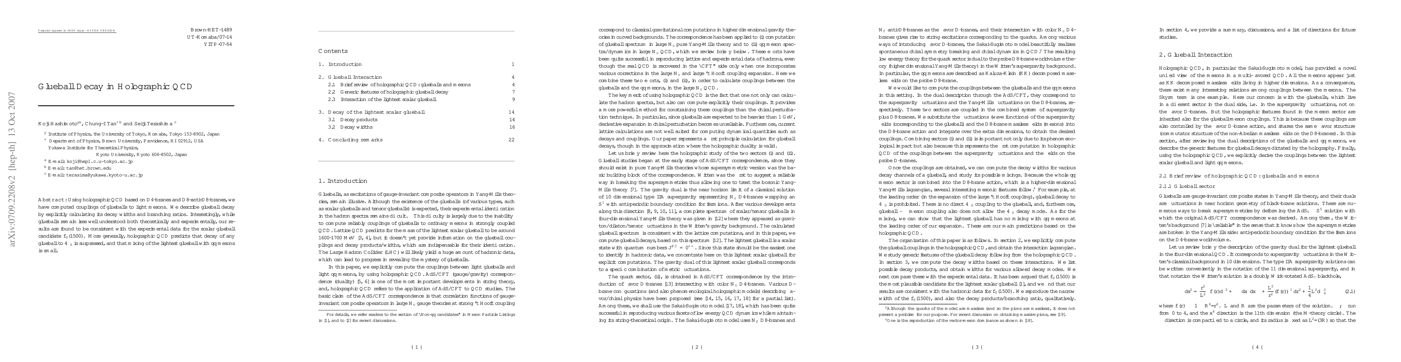 This research computes glueball decay couplings in holographic QCD, finding consistent results with experimental data for the scalar glueball candidate f_0(1500). Holographic QCD predicts suppressed decay of glueballs to four pions and minimal mixing of the lightest glueball with quark-antiquark mesons.