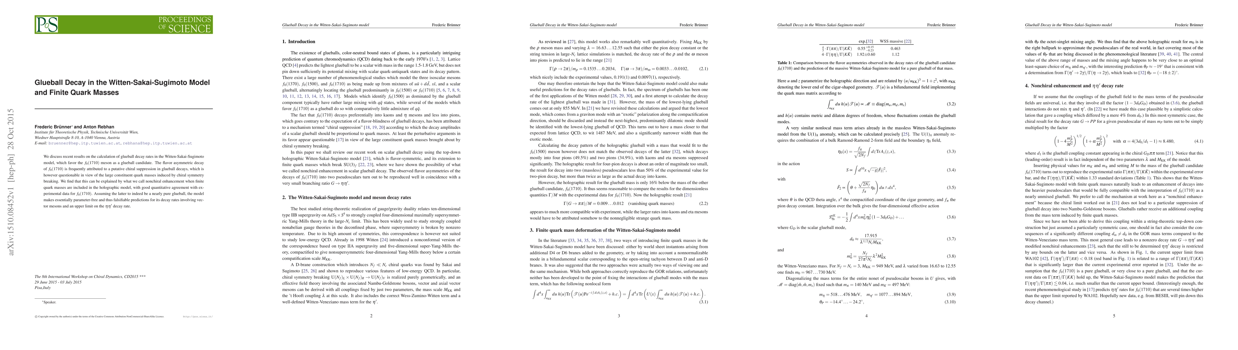 We discuss recent results on the calculation of glueball decay rates in the Witten-Sakai-Sugimoto model, which favor the $f_0(1710)$ meson as a glueball candidate. The flavor asymmetric decay of $f_0(1710)$ is frequently attributed to a putative chiral suppression in glueball decays, which is however questionable in view of the large constituent quark masses induced by chiral symmetry breaking. We find that this can be explained by what we call nonchiral enhancement when finite quark masses are included in the holographic model, with good quantitative agreement with experimental data for $f_0(1710)$. Assuming the latter to indeed be a nearly pure glueball, the model makes essentially parameter-free and thus falsifiable predictions for its decay rates involving vector mesons and an upper limit on the $\eta\eta'$ decay rate.