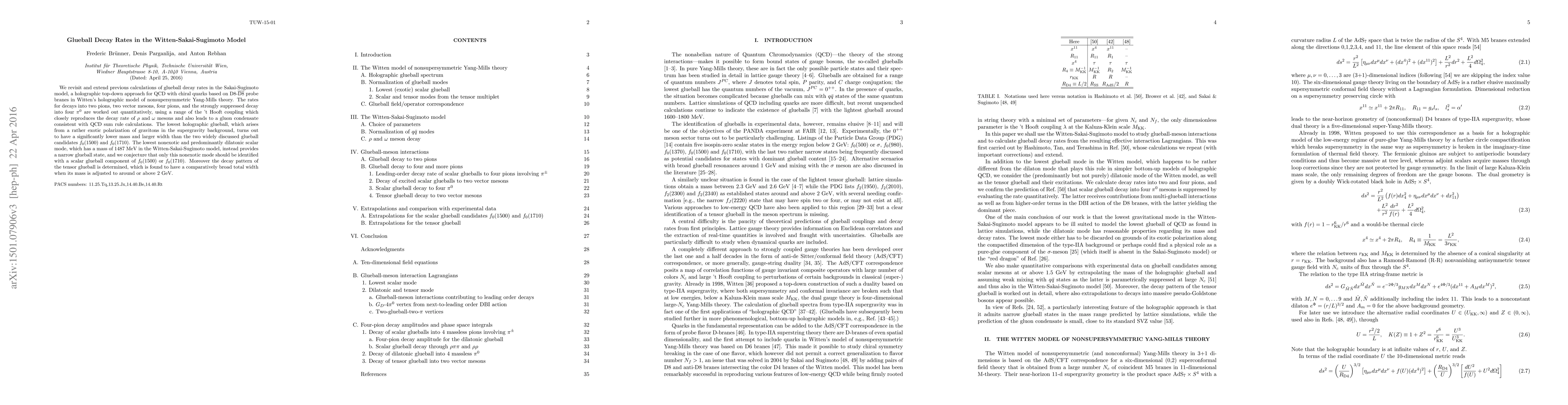 This paper extends the study of glueball decay rates in the Sakai-Sugimoto model, revealing that the lowest nonexotic glueball has a significantly lower mass and narrower width than previously discussed candidates. The study identifies the 1487 MeV scalar mode as a potential candidate for the f0(1500) or f0(1710) glueball, while the tensor glueball exhibits a broad decay width above 2 GeV.