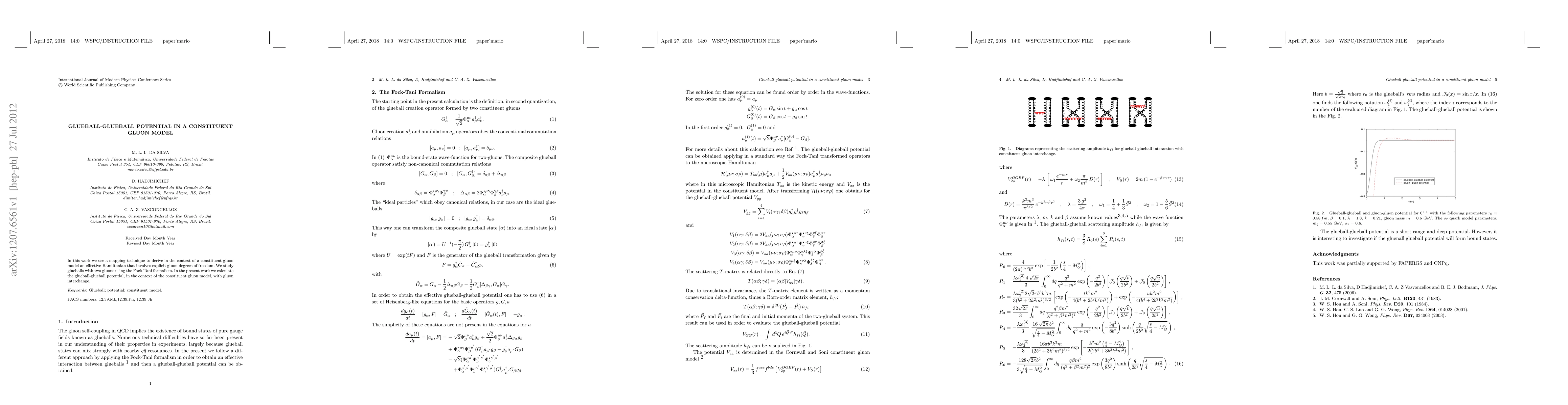 In this work we use a mapping technique to derive in the context of a constituent gluon model an effective Hamiltonian that involves explicit gluon degrees of freedom. We study glueballs with two gluons using the Fock-Tani formalism. In the present work we calculate the glueball-glueball potential, in the context of the constituent gluon model, with gluon interchange.