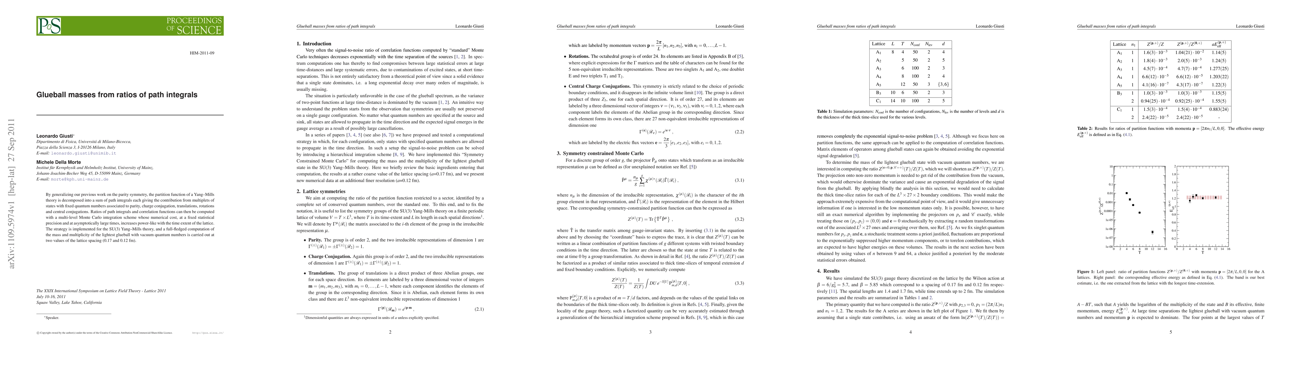 This research paper presents a method to calculate glueball masses in SU(3) Yang-Mills theory by decomposing the partition function into path integrals. Using a multi-level Monte Carlo integration scheme, the lightest glueball's mass and multiplicity are determined at two lattice spacings, 0.17 fm and 0.12 fm.